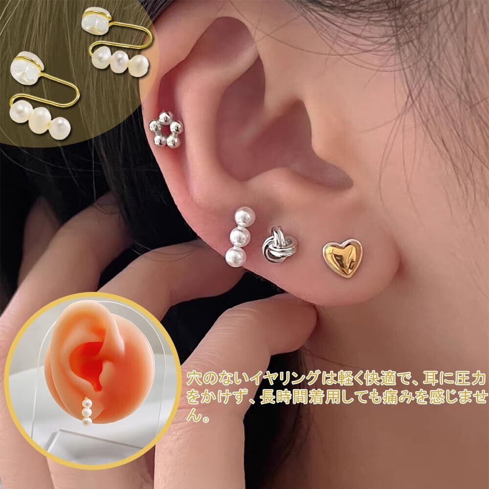 KALOLINNA ノンホールピアス パールイヤリング 3連 痛くない ノンホール 可愛い おしゃれ ホワイト ピアス穴不要 プレゼント 誕生日 女性