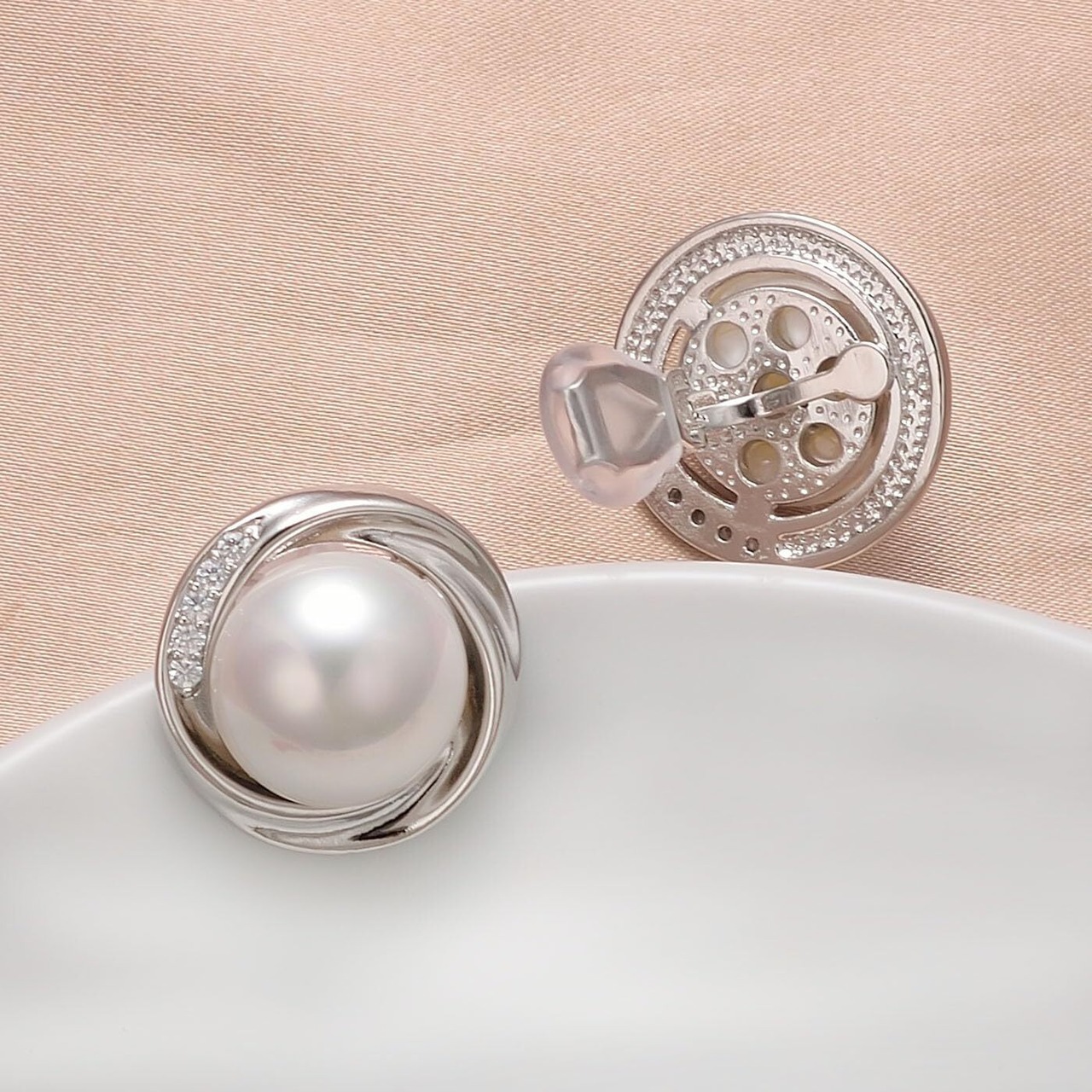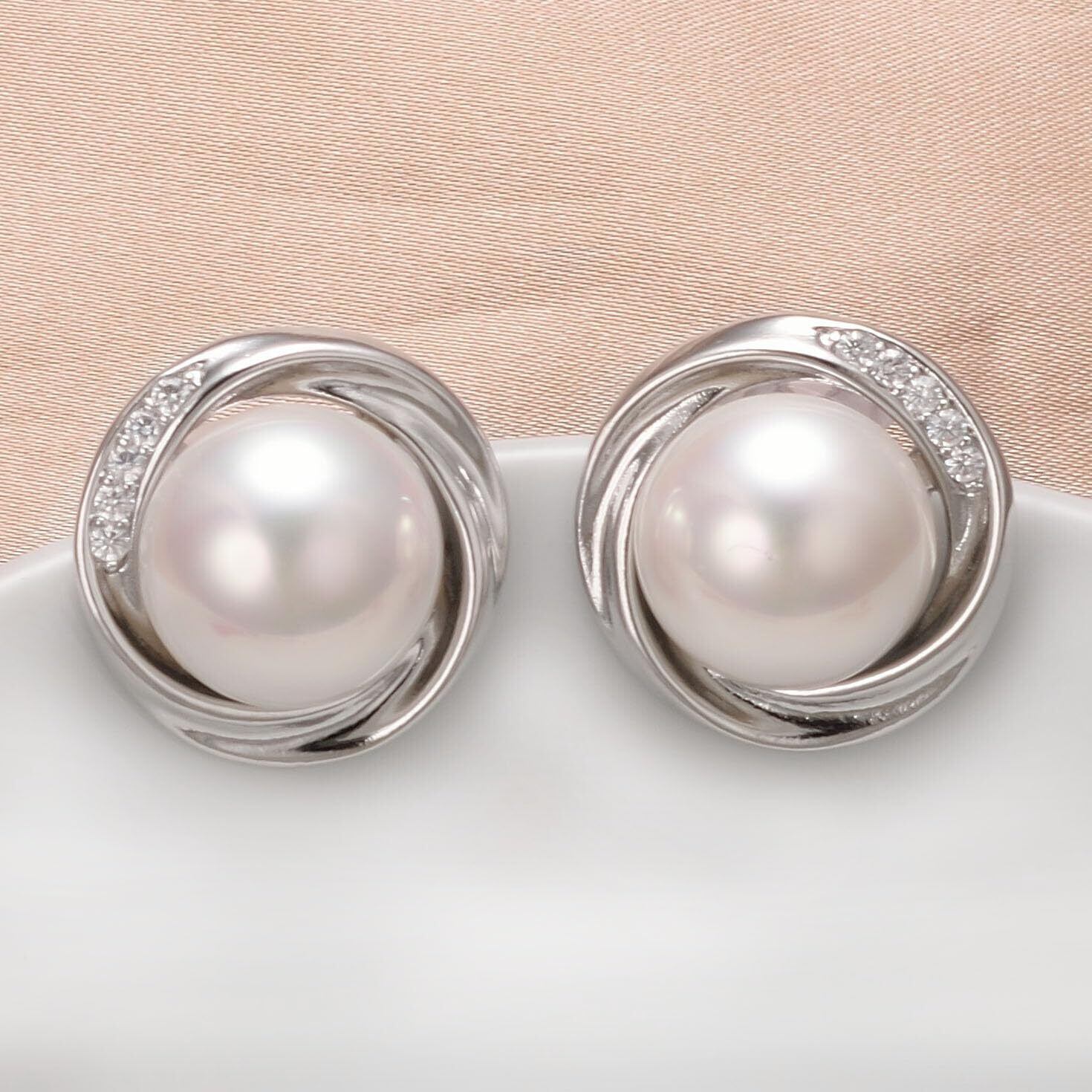 【素材】貝殻真珠、ジルコニア、真鍮、18Kホワイトゴールドメッキの3層。イヤリングサイズ:18*18mm。付属品:yoursfs 専用ケース、ジュエリーメンテナンスマニュアル。
