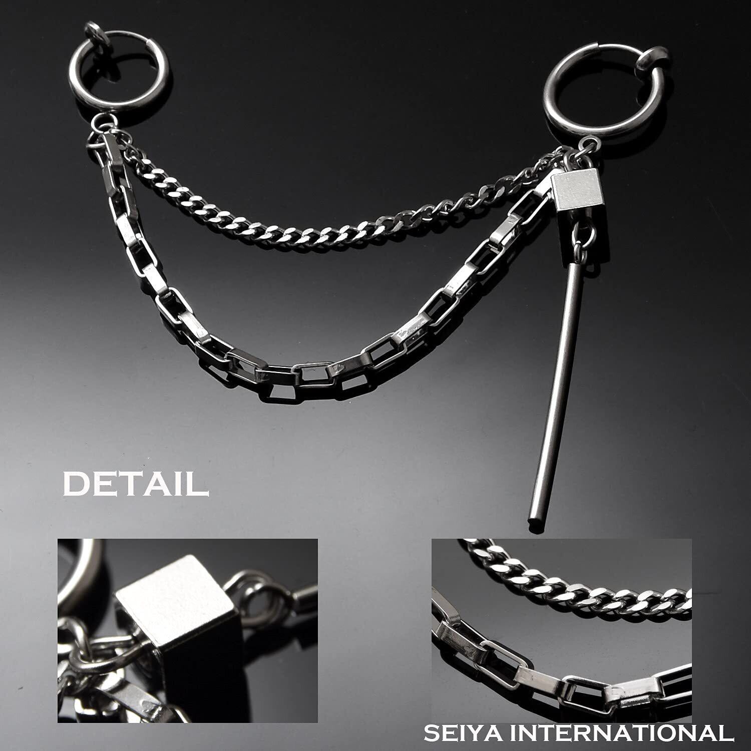 [SEIYA INTERNATIONAL] フェイクピアス メンズ レディース ノンホール イヤリング イヤーカフ チェーン 穴なしピアス 韓国 片耳