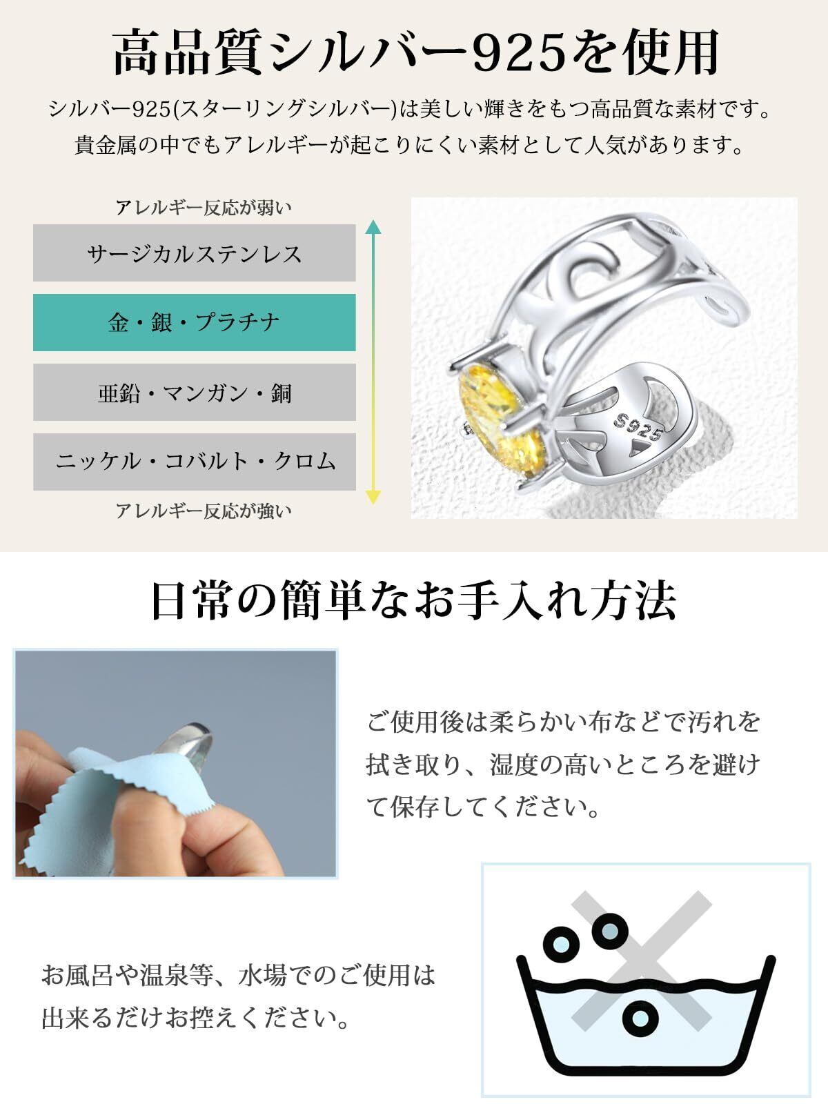 [シルバー925素材] 素材はシルバー925を使用し、ロジウムコーティングを施している為、素材の輝きが長持ちいたします。シルバー925素材はアレルギーが出にくくジュエリーとして加工しやすい点で大変優れた素材ですが、ご使用とともに輝きが落ちてきたなと感じた際にはシルバー用のジュエリークロスで磨くことをお勧めいたします。