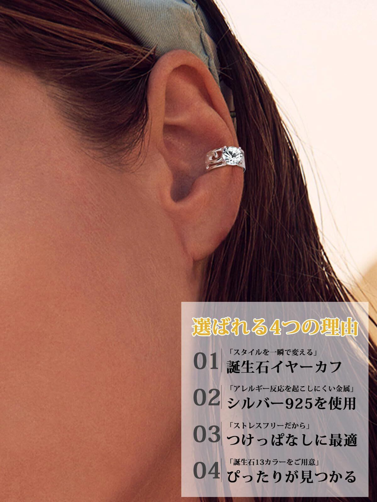 [誕生石イヤーカフ] いつまでも途切れることなく伸びてゆく唐草模様のの中で、一粒の誕生石がキラリと輝く可憐なシルバー925イヤーカフ。輝きが際立つ洗練されたシンプルデザインで、両耳に着けて少しコンサバティブなスタイリングを楽しんだり、他のイヤリングと重ね付けをして、よりパーソナルなコーディネートを楽しめます。ギフトにもおすすめです。
