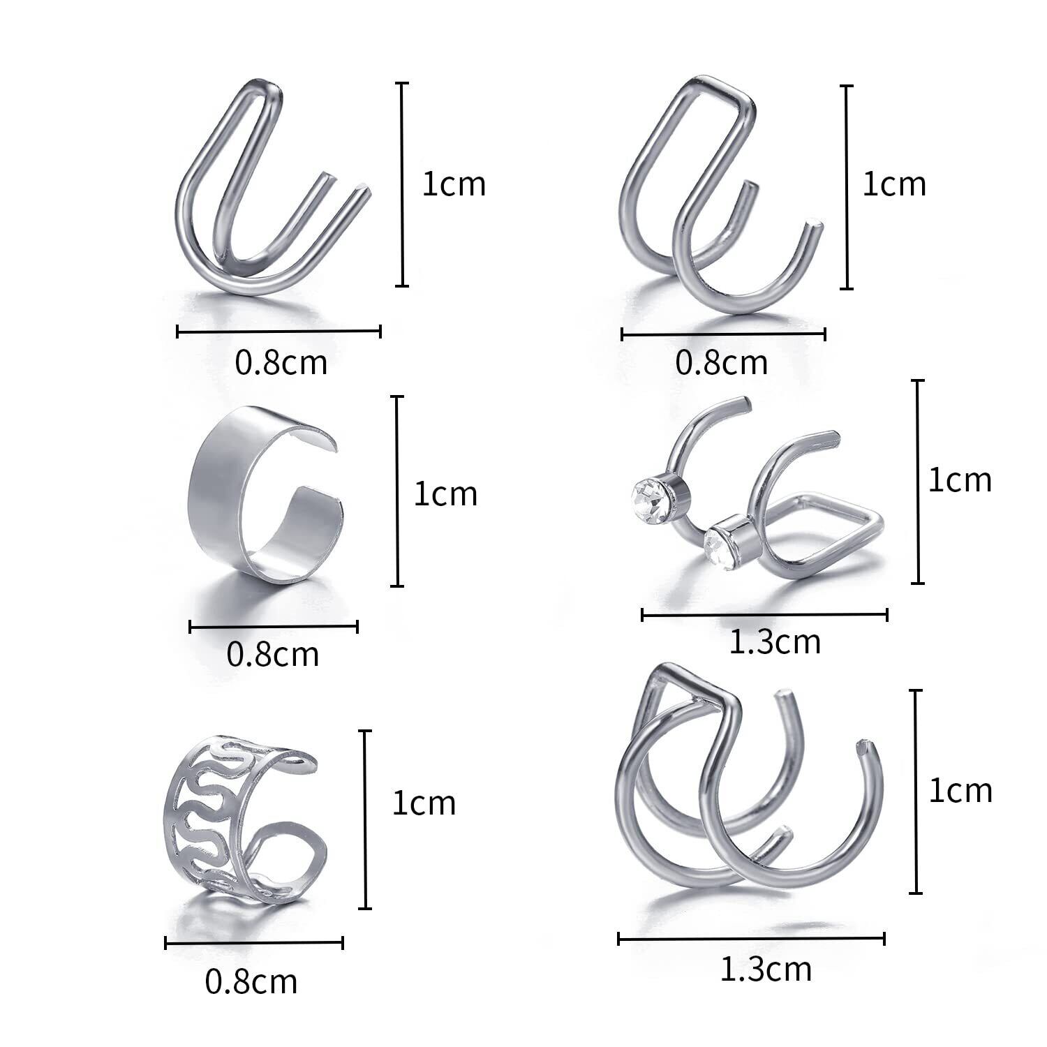RICISUNG イヤーカフ【6ペア入り】レディース フェイクピアス ノンホールピアス イヤーカフ 人気 タッドピアス 6種類 軟骨 ピアス 挟む イヤリング