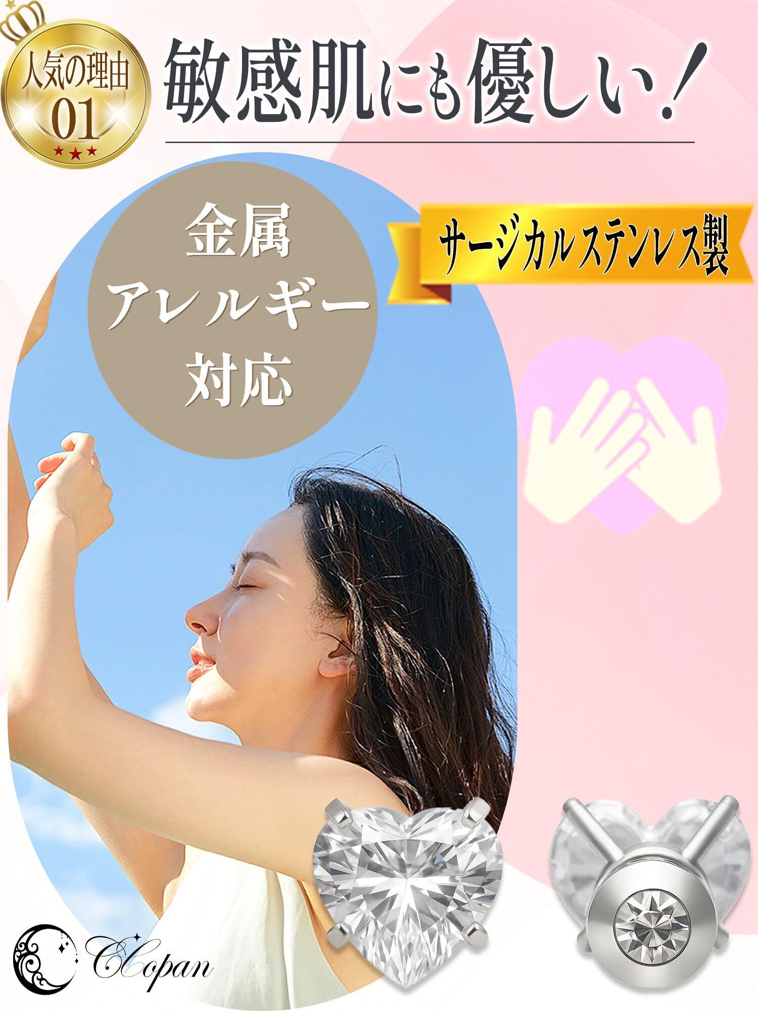 【つけっぱなし/金アレ対応】 CCopan ハート ピアス つけっぱなし 金属アレルギー対応 ファーストピアス セカンドピアス サージカルステンレス メンズ レディース ネジ式 両耳 2個セット