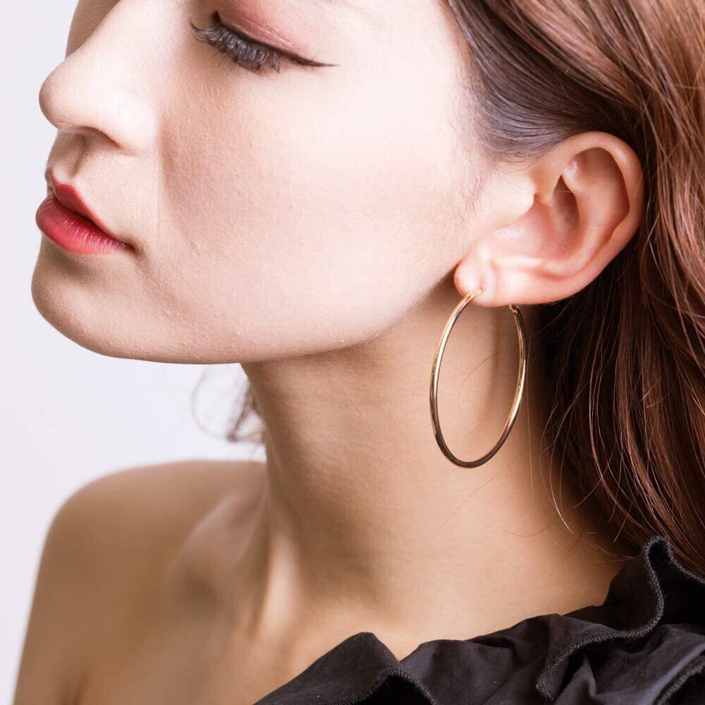 サイズ:直径内側 30mm 40mm 50mm 60mm 70mm 幅2mm / 両耳セットのピアスです。