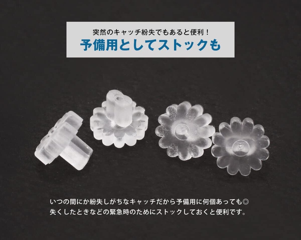 いつの間にか紛失しがちなキャッチだから予備用に何個あっても◎緊急時のためにストックしておくと便利ですストックとしてまとめ買いにぴったり!