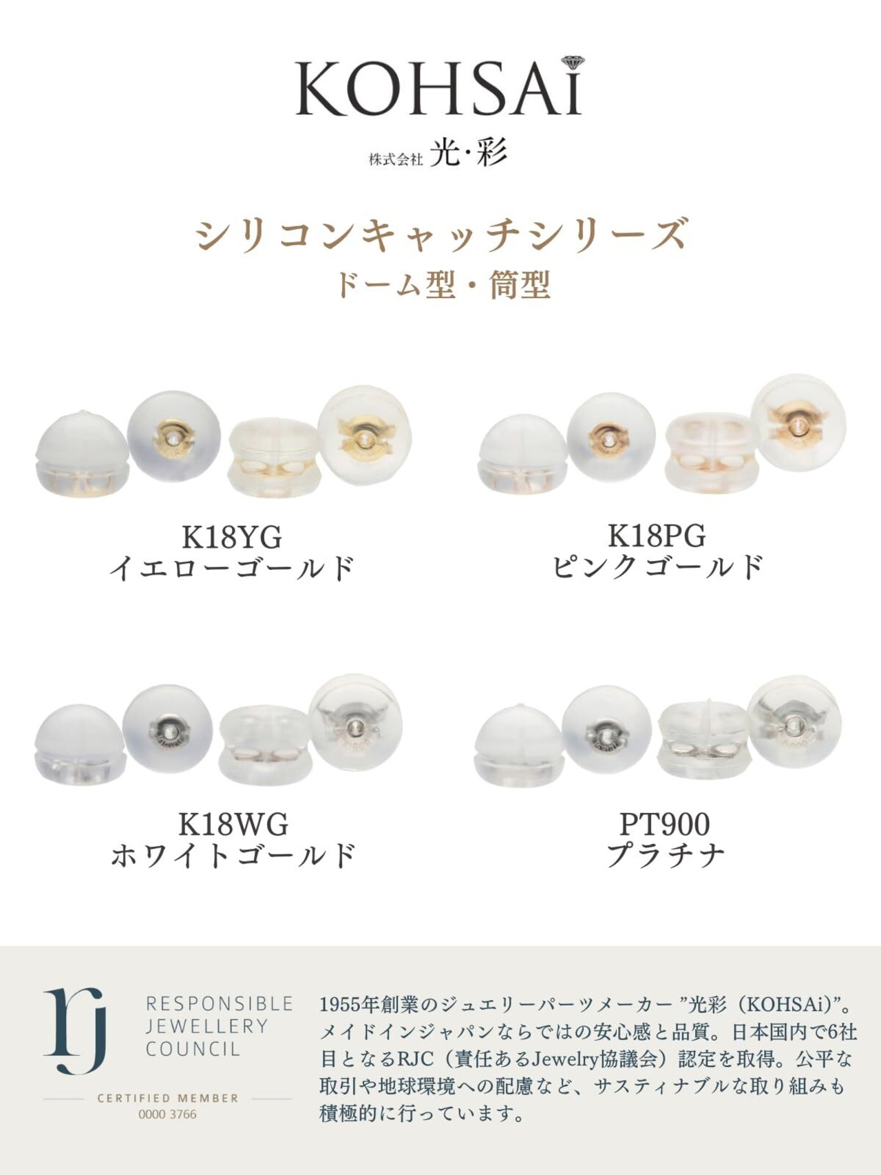 【KOHSAi】ピアスキャッチ 日本製 自社製造 シリコン 地金内蔵 両耳ペア(ドーム型S/PT900プラチナ)