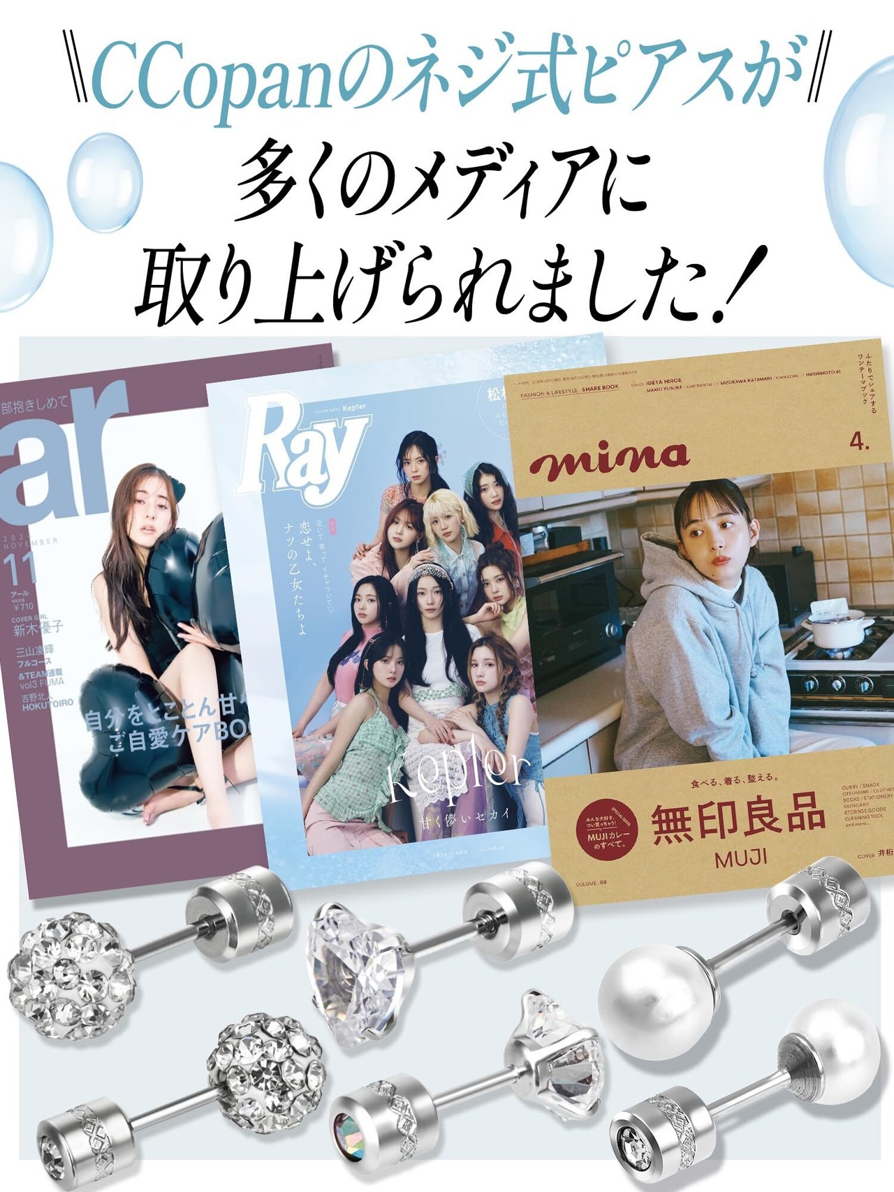 【ネジ式でしっかり固定】 ピアスのキャッチがすぐに外れてしまう…そんなお悩みを解決するねじ式デザイン。差し込むだけのキャッチと違い、しっかり締めることでピアスが落ちにくくなります。大切なピアスをなくさないための必需品として、普段使いにもおすすめです。