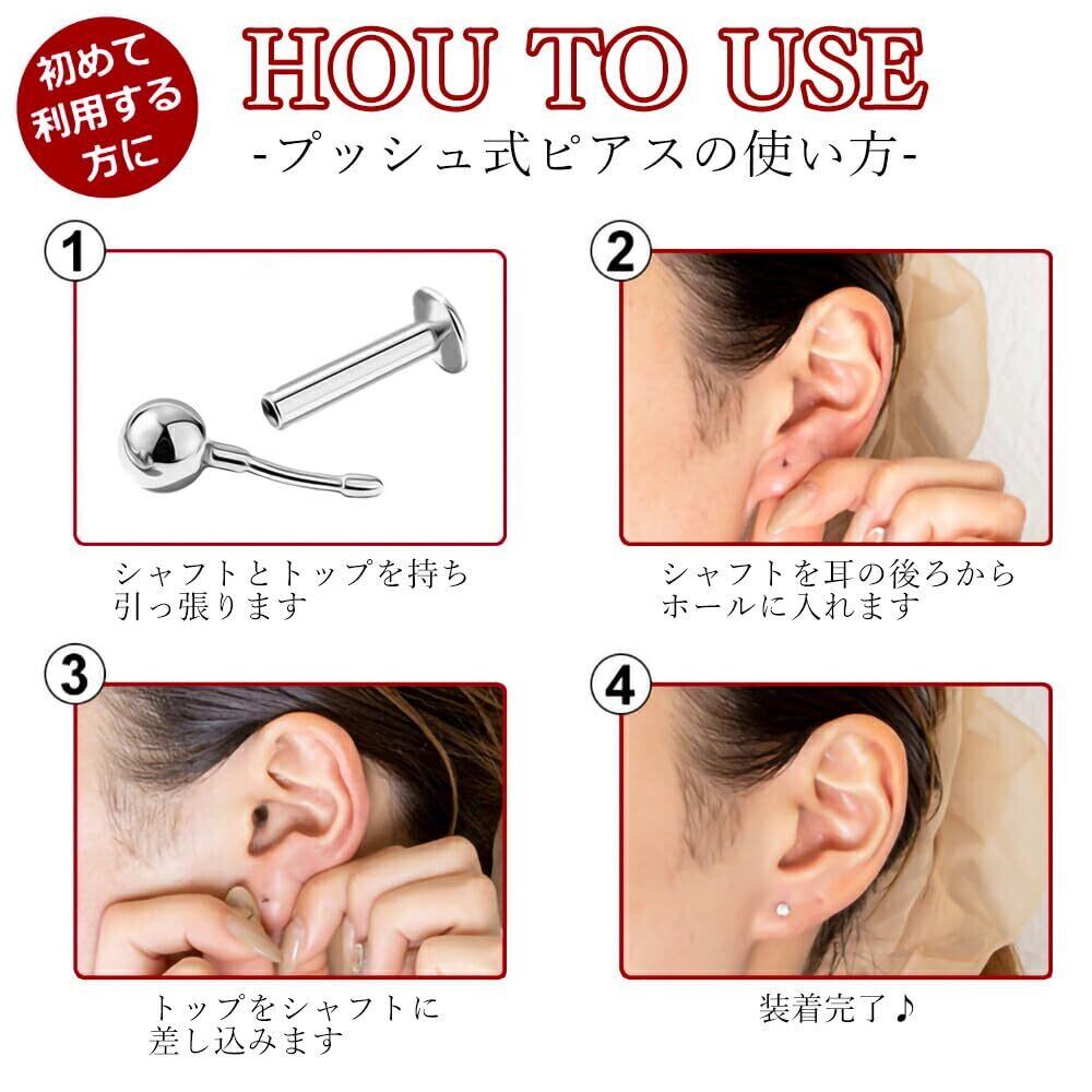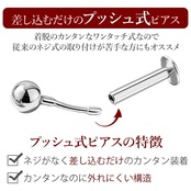 【着脱カンタン】ネジのないワンタッチ設計のプッシュ式ピアスで、簡単な差し込みだけでしっかりと装着できるので従来のネジ式が苦手な方にもオススメ。カンタンなのに外れにくい構造のため、ボールがなくなる心配もありません。