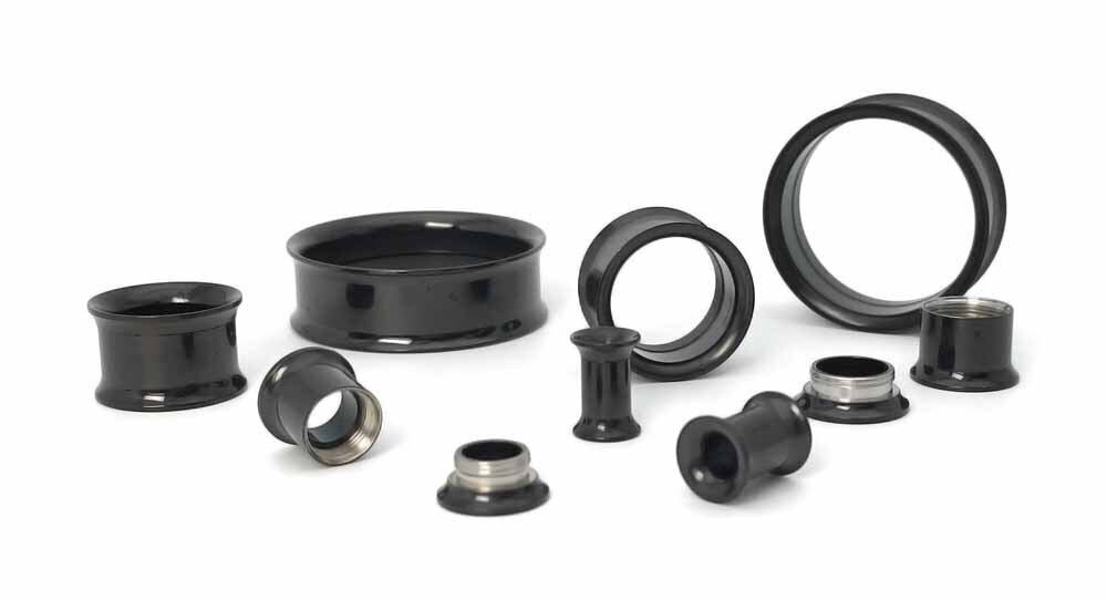 five ships ダブルフレア チタンコート ボディピアス トンネル ボディーピアス [QA8B] (ブラック 10mm 00G)