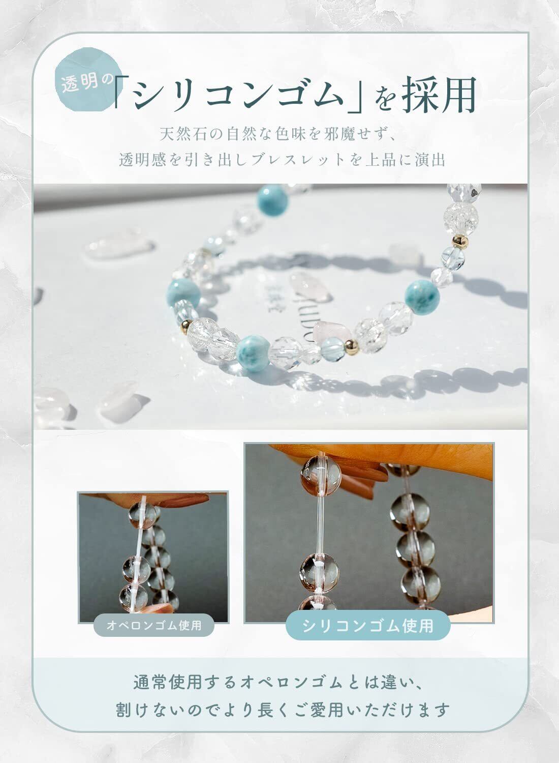 日常の生活で ブレスレット が避けたり、切れてしまう事がないよう丈夫な シリコンゴム を使用しておりますので、長くご愛用頂けます。さらに!シリコンゴムは 透明 ! 天然石 の自然な色味を邪魔せず、 ブレスレット を 上品 に演出します。