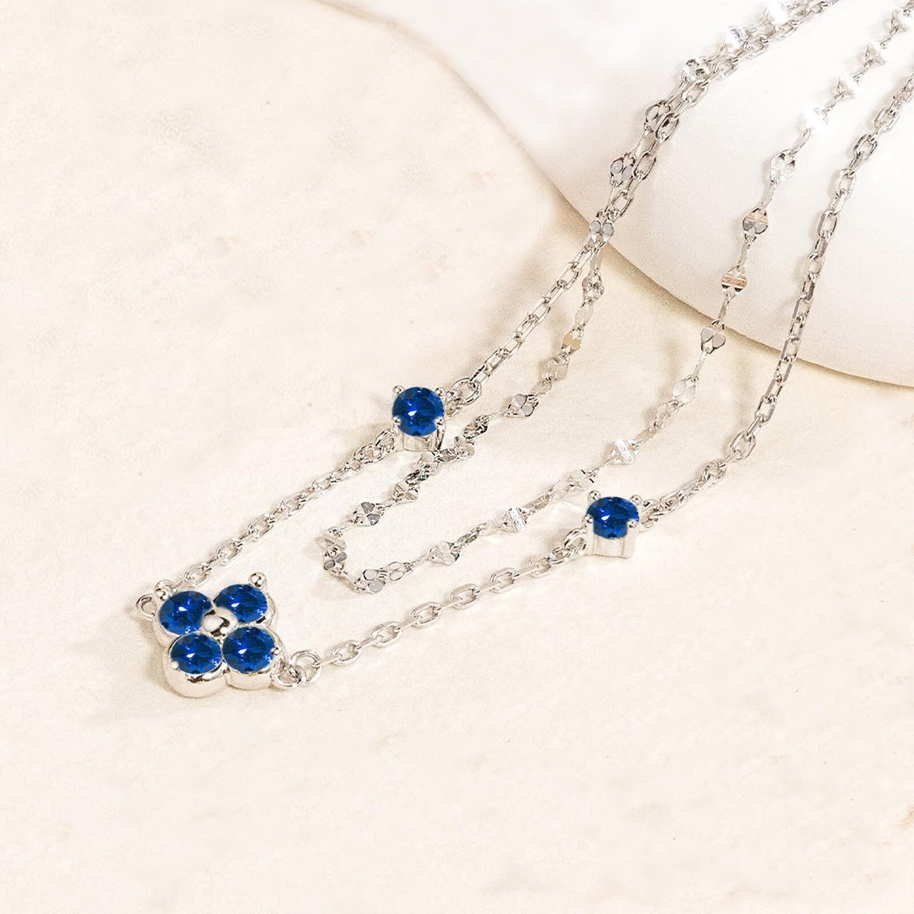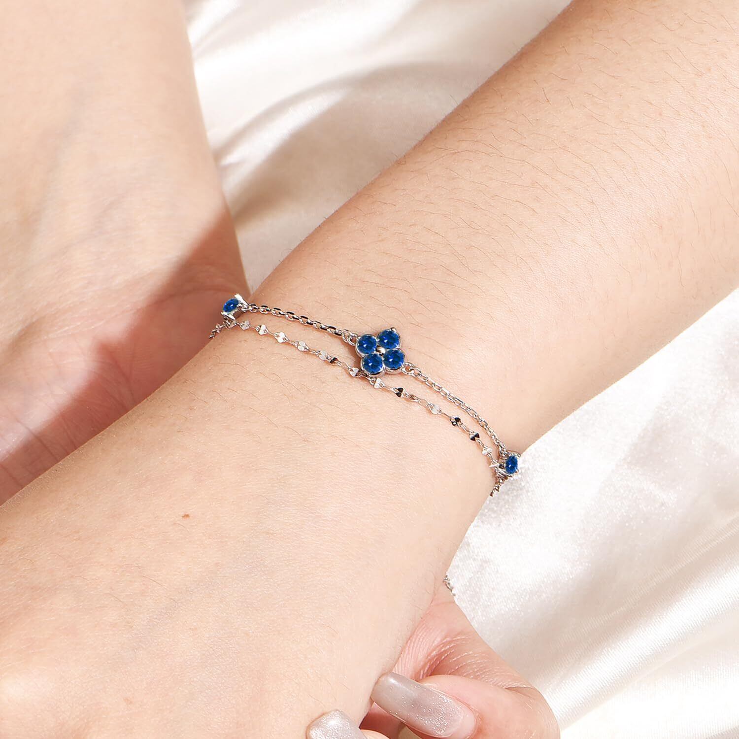 FH.bird サファイア ブレスレット レディース 9月誕生石 四つ葉のクローバー 【幸運の花】 シルバー925 金属アレルギー対応 ブレスレット 真珠 シンプル アクセサリー 妻 彼女 誕生日 プレゼント 20代 30代 40代