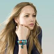 鮮やかなターコイズカラーの石のモチーフを中心に異素材のパーツを組み合わせた、カジュアルスタイルにピッタリのレディースブレスレットです。