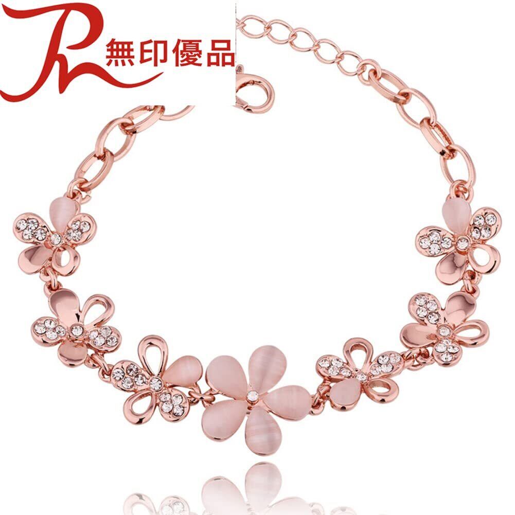 Rockyu ジュエリー ブランド 人気 ブレスレット レディース ワイルド ピンクゴールド 18k カラー 透明 ダイヤモンド バングル (花, ピンクゴールド) (桜)