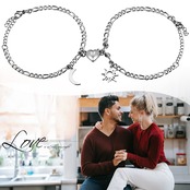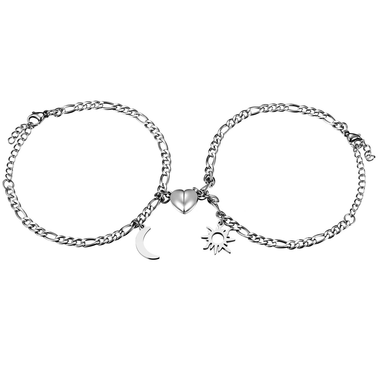 Flogno バレンタインデープレゼント 月 太陽 ハートお揃い 磁力 恋人ブレスレット カップル ペア バングル 腕輪 腕飾り 彼氏 彼女 告白 アクセサリー ステンレス製 メンズ レディース 可調整 日常 記念日 誕生日 ギフト袋付き(シルバー色)