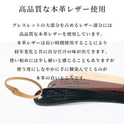 【ブレスレット】高品質な本革を使用。 ブレスレットの大部分を占めるレザー部分には高品質な本革を使用しております。 本革は長い時間使用することにより、経年変化と共に自分だけの味が出てきます。 使いめには少し硬さを感じることもございますが、使うたびにしなやかに手に馴染んでくるのが本革のいいとことでございます。