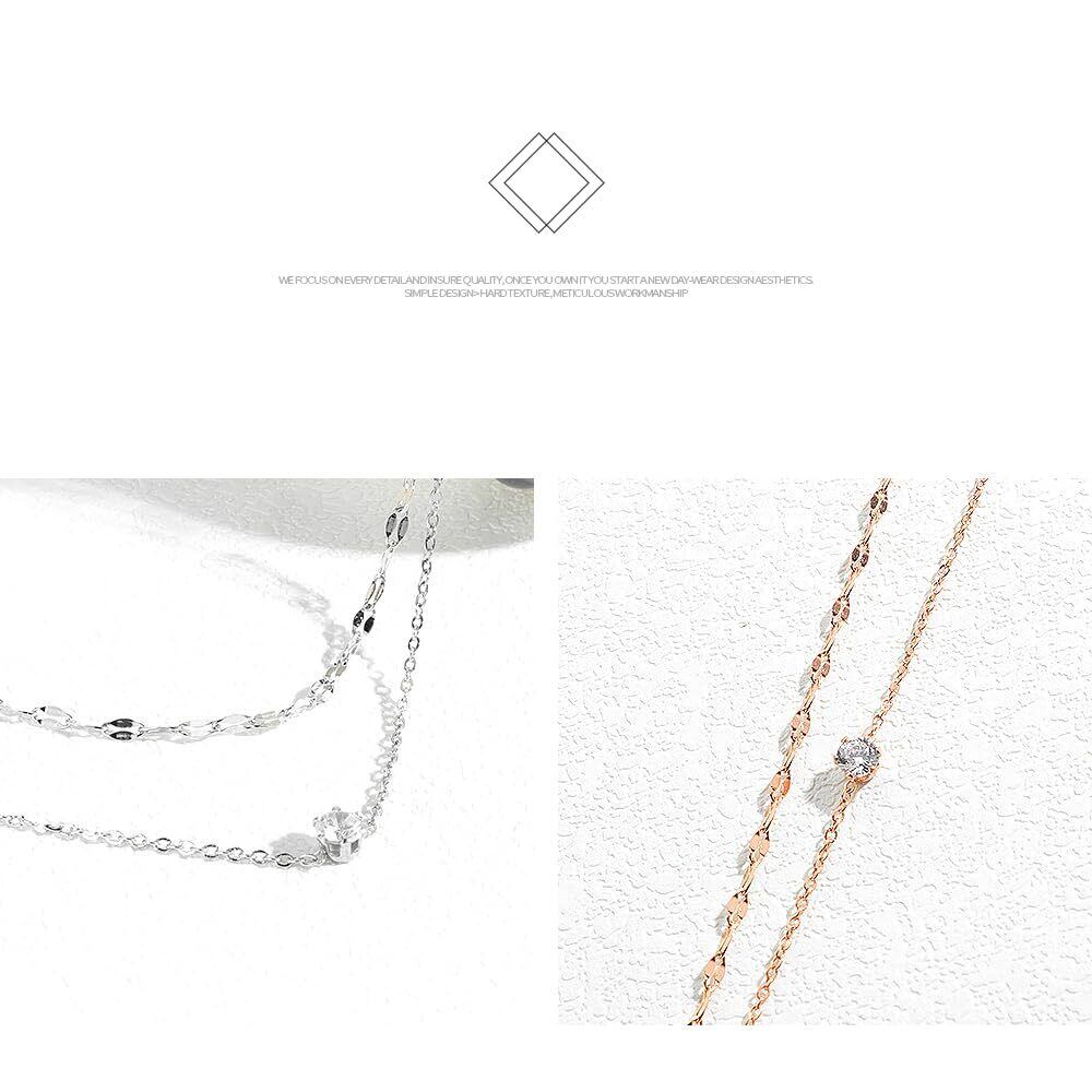 アンクレット レディース ステンレス キュービックジルコニア ダブルチェーン ローズゴールド シルバー 調整可能 21cm+4.5cm 金属アレルギー対応 おしゃれ アクセサリー プレゼント 誕生日 クリスマス