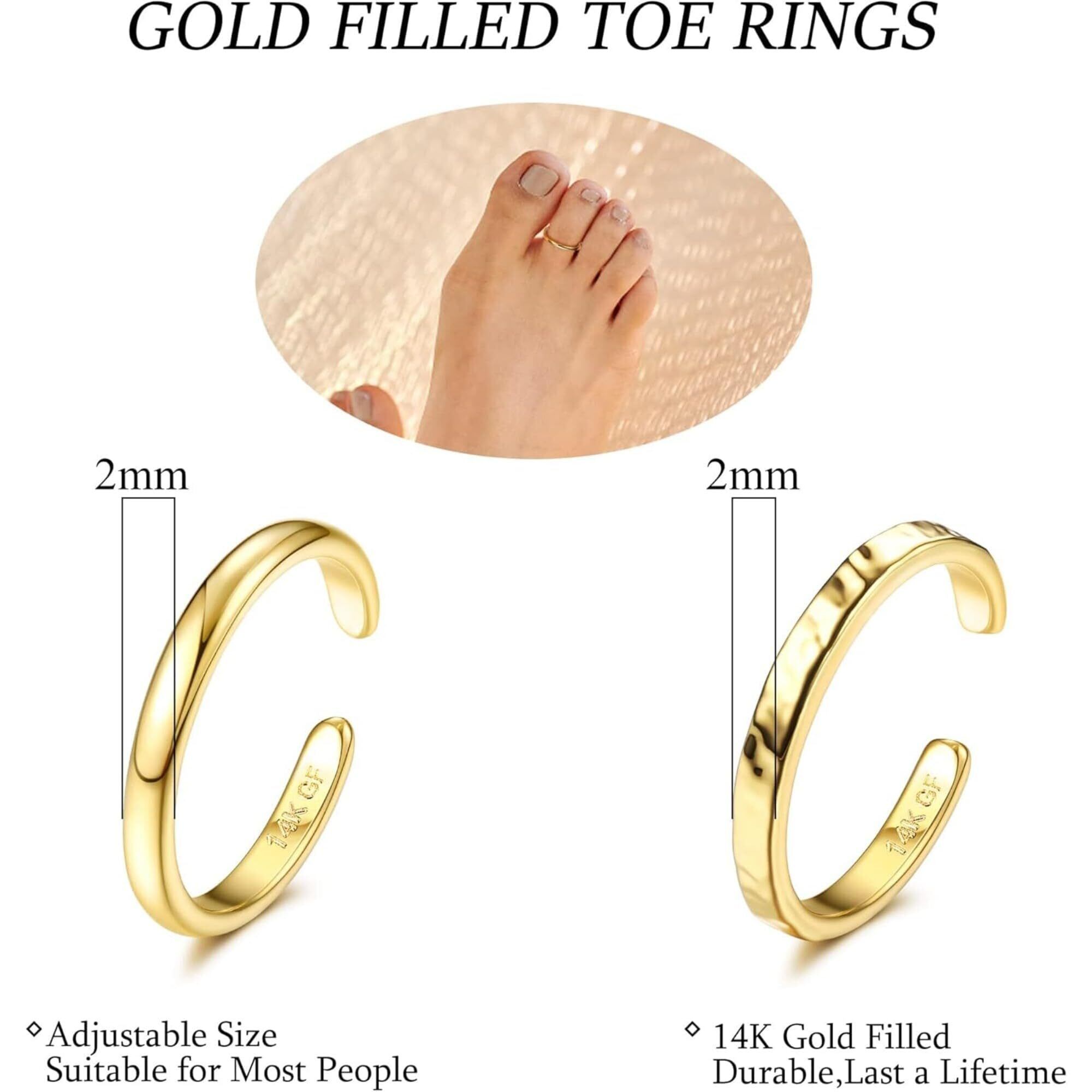 [Jstyle] 14K トゥリング レディース ゴールド充填 足 リング シンプル オープン リング 調節可能 2点 セット 指輪 足 トーリング 女性 かわいい ギフト トゥリング ジュエリー