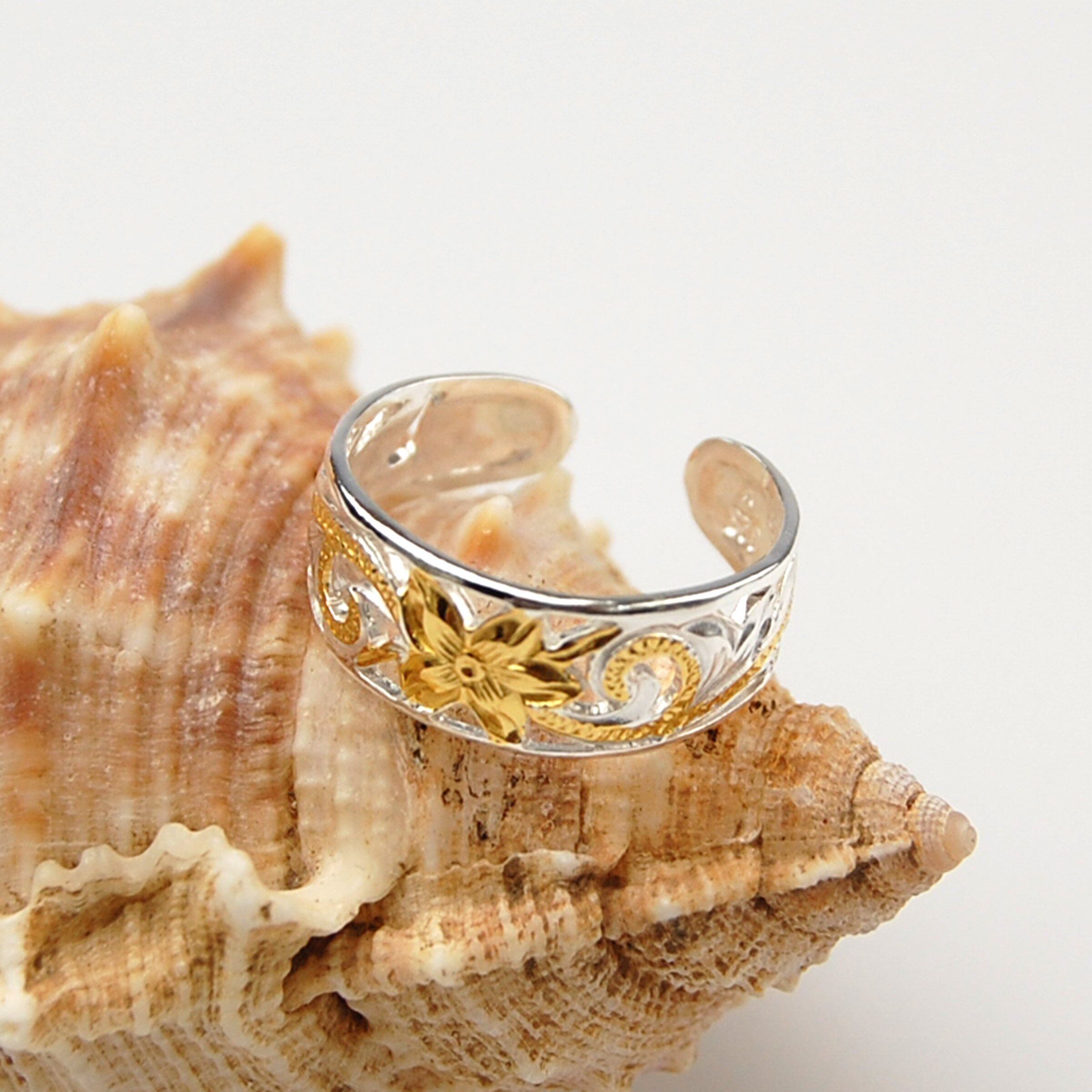 [ブリージーアイランド] ハワイアンジュエリー ハワイアンスクロール トゥリング シルバー 透かし彫り 8mm幅
