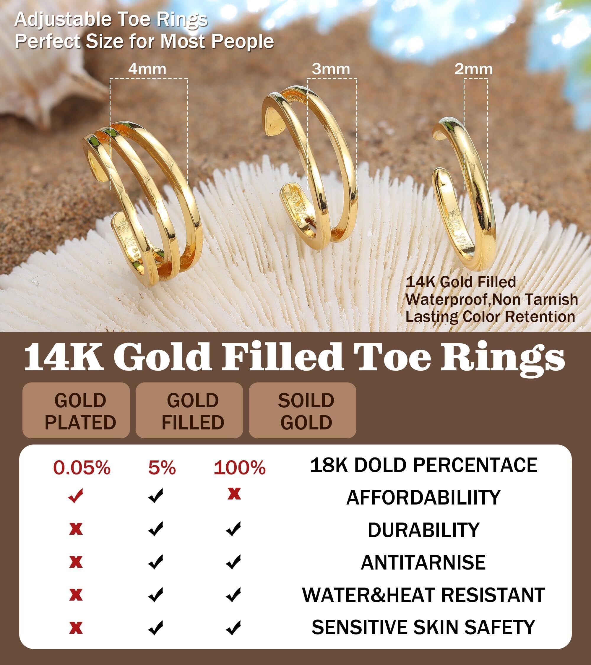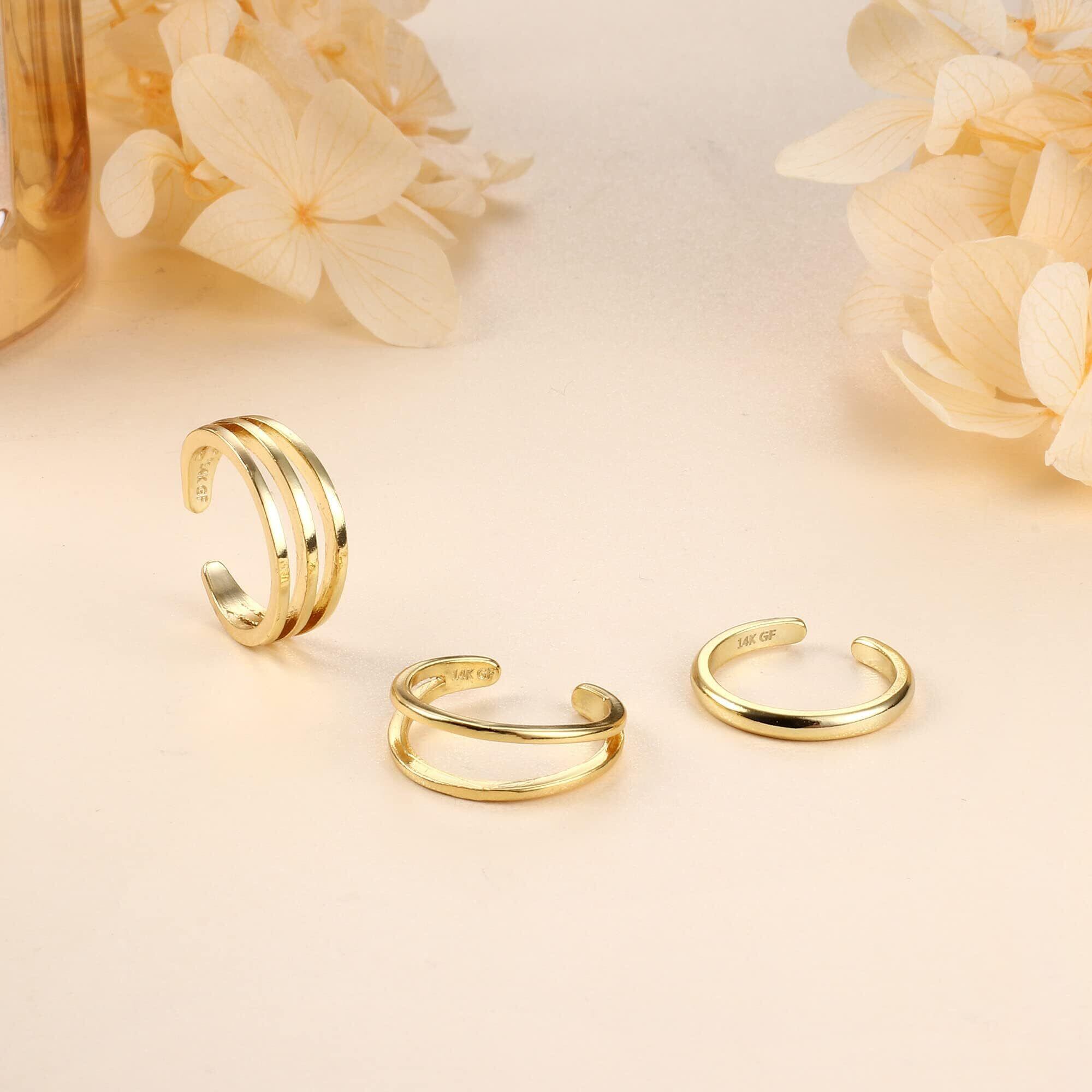 ゴールドトーリングセット 薄いゴールドトーリング3 点、1mm、2mm、3mm、シンプルで繊細、耐久性があり、毎日身に着けられるほど上品です。シンプルでキュート、単独で着用しても重ね付けしても、つま先から美しく輝き、出会います。毎日異なるニーズに対応します。