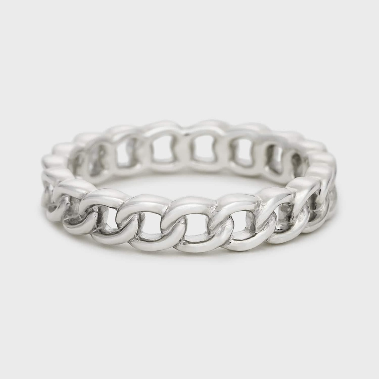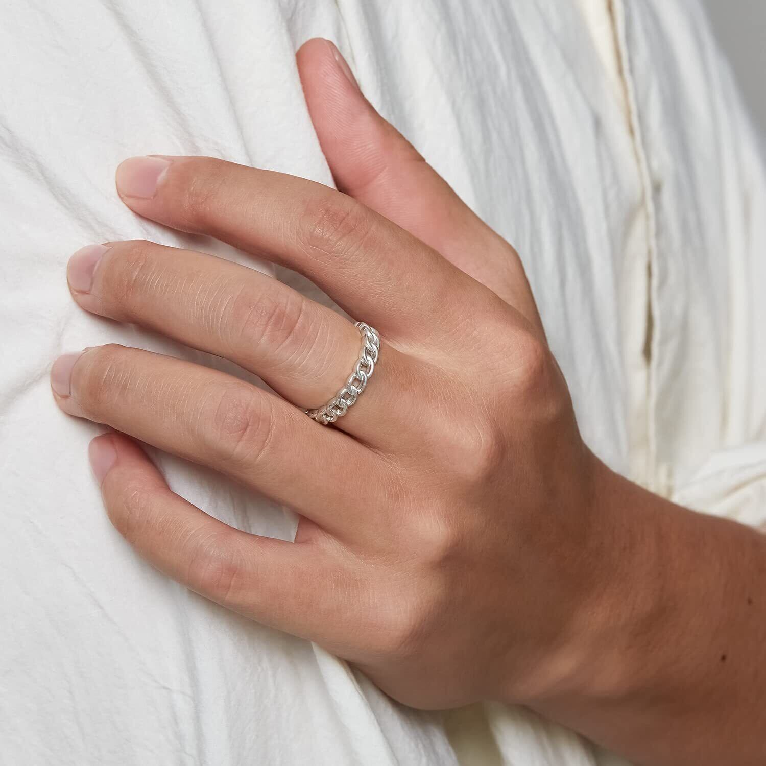 永遠の絆の意味が込められた、途切れの無いチェーンモチーフ。チェーンをぐるりと指に巻き付けたような立体的なシルエットにこだわりました。使い込むほどに指に馴染み、味わい深くなるリングです。ペアリングとしてもお使いいただけます。※サイズ直し不可。▼素材違い ゴールドの品番:30224111084。▼オススメコーディネート品番:30224111081、30212111015。