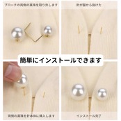【実用性】:服に穴を開けにくい安全ピンタイプで、安心して毎日使える実用的なブローチピンです。パールブローチピンと安全ピンが一体化したデザインで、服に穴を開けずにしっかり固定。