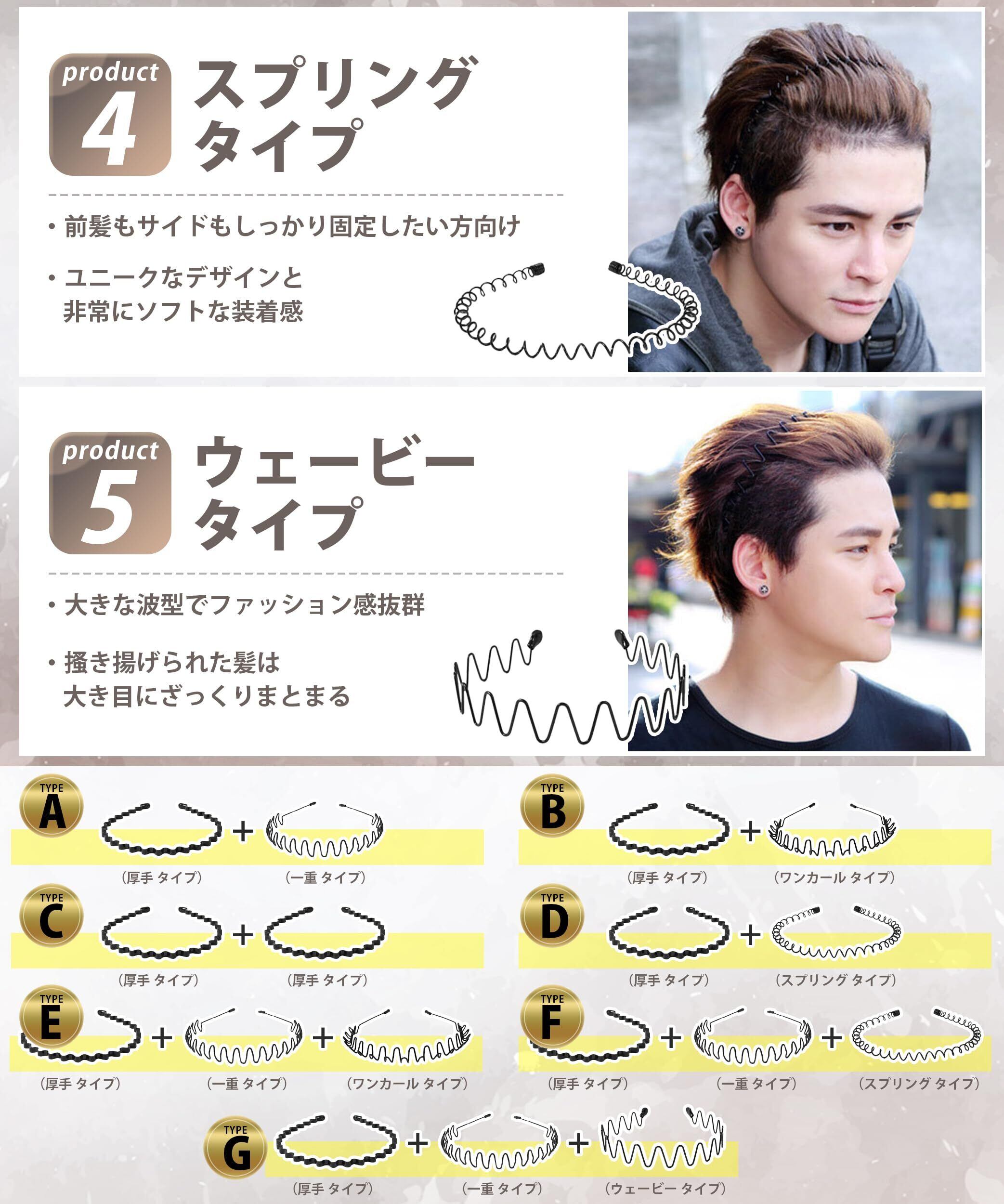 【ファッションなデザイン】全体的に黒を基調としたデザインで、異なるカーブのウェーブがシンプルかつスタイリッシュなカチューシャです。このカチューシャはメンズにとって派手になりすぎず、どんなヘアスタイルにも違和感がありません。 シンプルなデザインで洗いやすいという特徴もあり、夏の汗の多さと雨の頻繁な特徴に対して、このメンズ用カチューシャ材質は防錆処理を経て、錆の問題が発生せず、長時間使用することができます。7つの組み合わせセットがあり、お好みのスタイルが見つかるはずです!