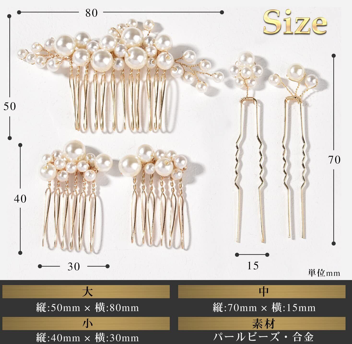【5バリエーションセット】大小様々なコーム5点セットです。色々な角度からしっかり髪をまとめて各所にパールがアクセントに。お好きな形に立体的なヘアアレンジが可能。