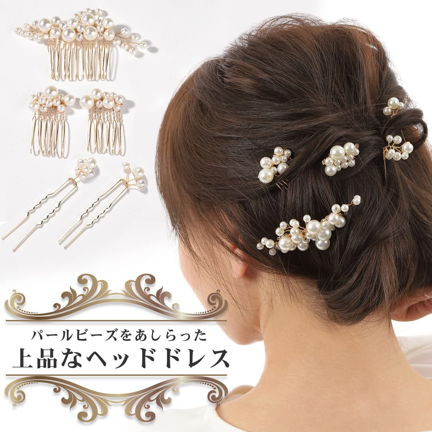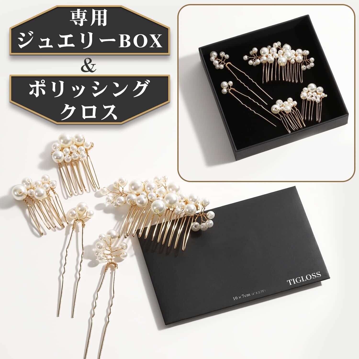 [ティグロス] TIGLOSS 美容師監修 髪飾り ヘッドドレス ヘアアクセサリー ヘアピン パール コーム ウェディング 専用BOX付