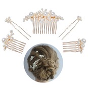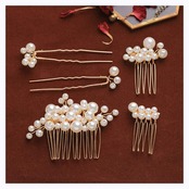 「セット」 大きいパールヘアアクセサリー*1、小さいパールヘアアクセサリー*2、パールヘアピン*2。大きいヘアアクセサリー:8* 5cm、小さいヘアアクセサリー:4.5*4cm/2.5*4cm、ヘアピン:1.5*7.5cm/1.5*7cm。