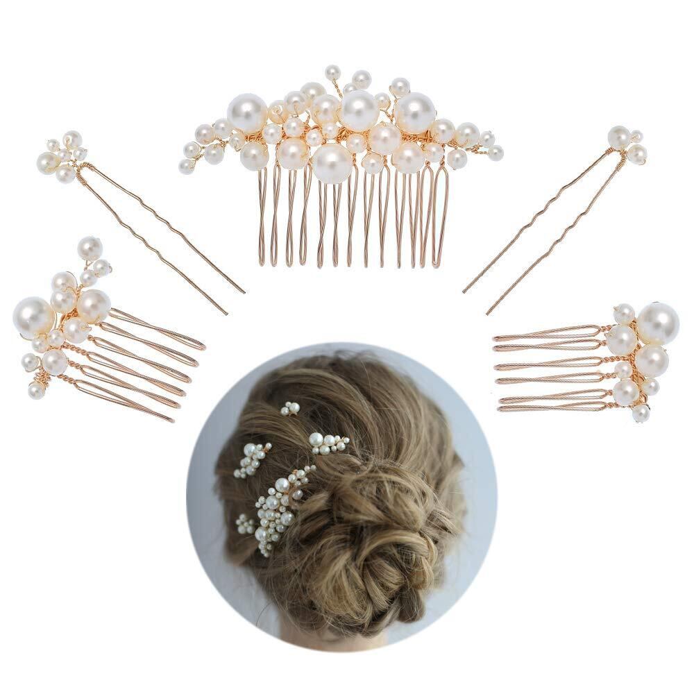 SPOKKI ヘアアクセサリー パール ヘアピン 髪飾り 3種類 5本セット ウェディング 結婚式 卒業式 発表会, ホワイト