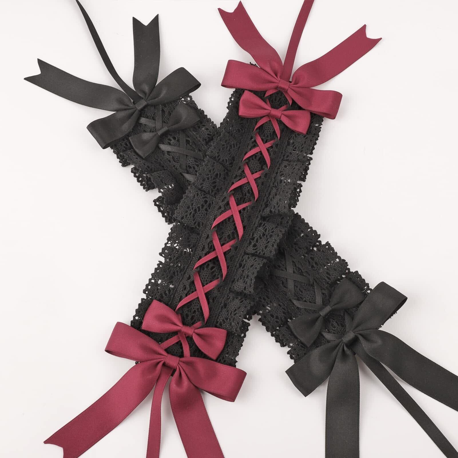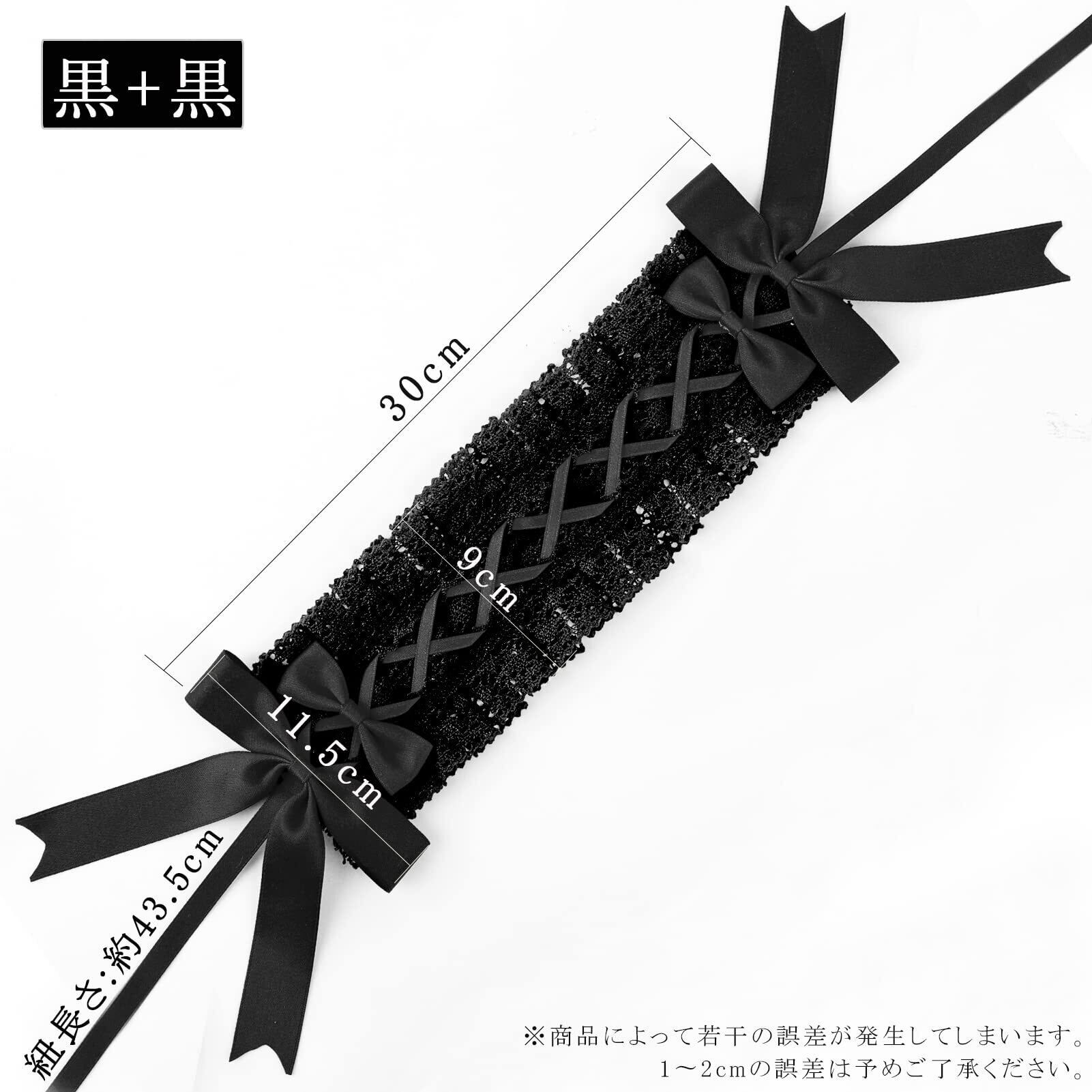 [Sitengle] ヘッドドレス ロリータ 髪飾り ゴスロリ ヘアアクセサリー カチューシャ レース リボン 蝶結び かわいい キュート メイドカフェ lolita 多色選択 (黒+黒)