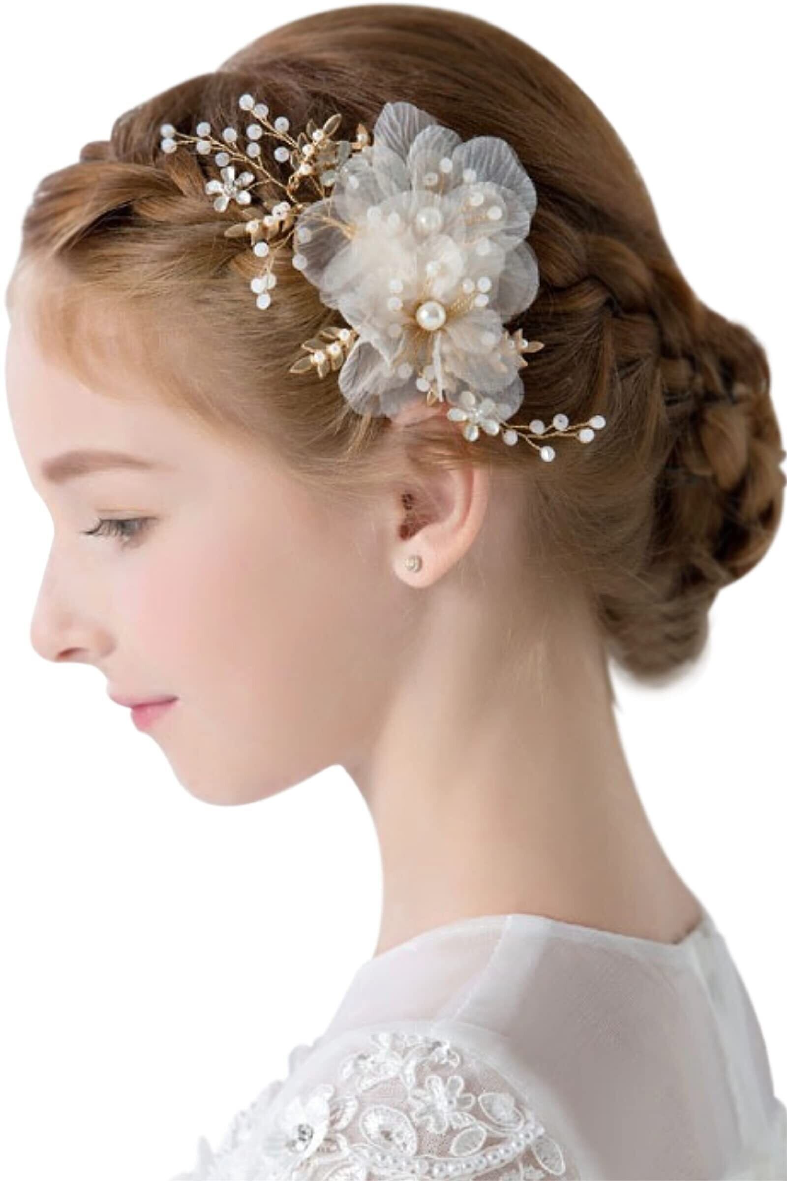 【窓際で眠る純白な夢】やわらかで透き通るシアー素材のお花にパールとゴールドリーフを散りばめたクリップ型の ヘアアクセサリー です。お花のもつ繊細で上品なイメージを演出します。シアーフラワーがワンポイントとなりステージなど遠くからみられる場面におすすめです。浴衣 七五三 などあでやかな和服の仕上げにもぴったりです。パーティーや誕生会 発表会 結婚式 入学式 卒業式 などにも。お子様だけでなく大人の女性にもお召しになれます。