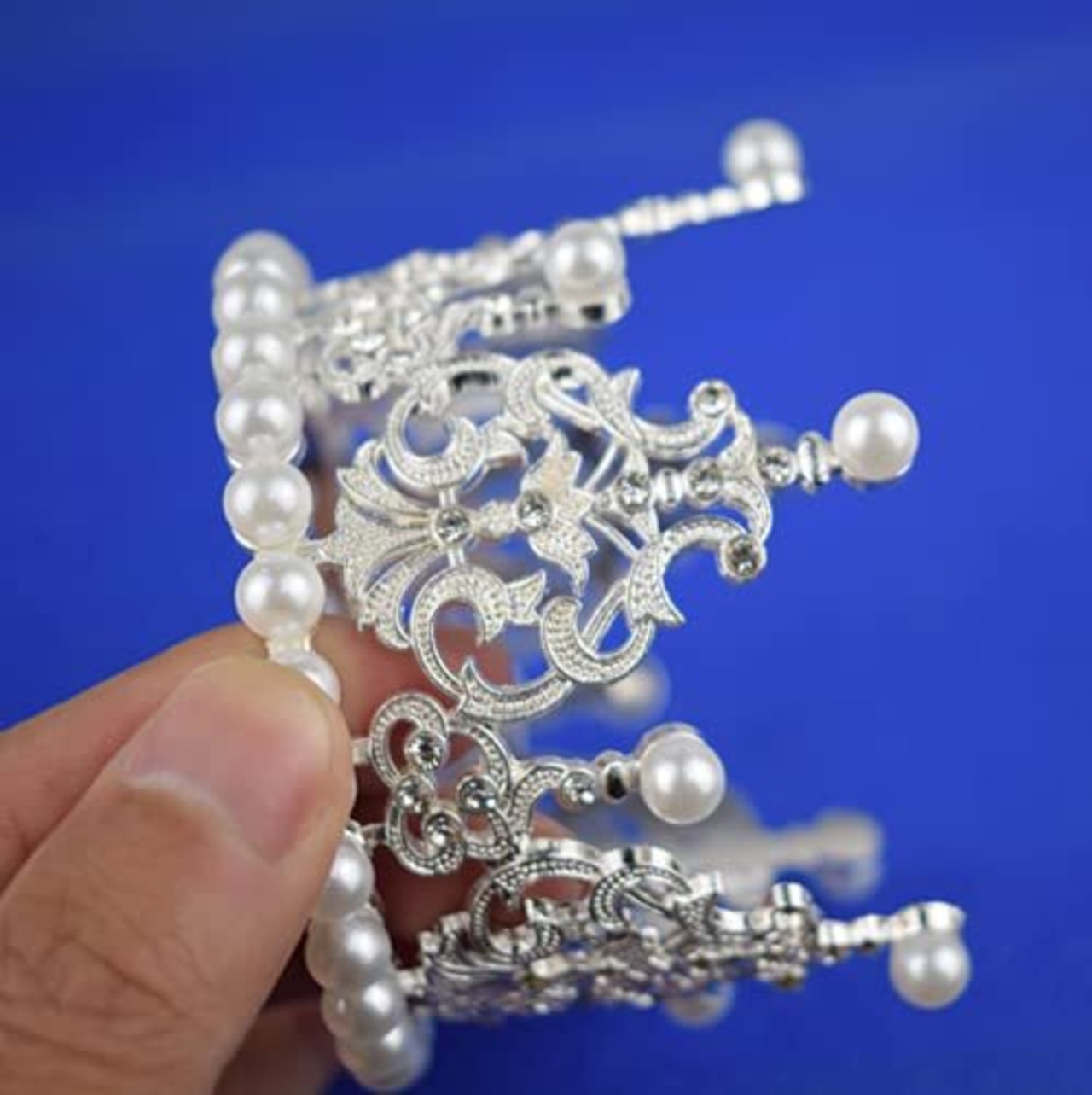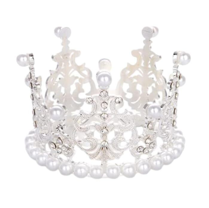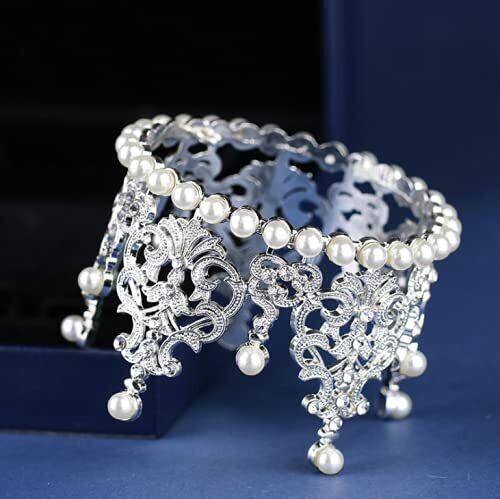 [YOVEKAT] 女性の女の子のレトロな男は、誕生日の結婚式アクセサリーのための真珠の王冠の花嫁ティアラケーキトッパー装飾