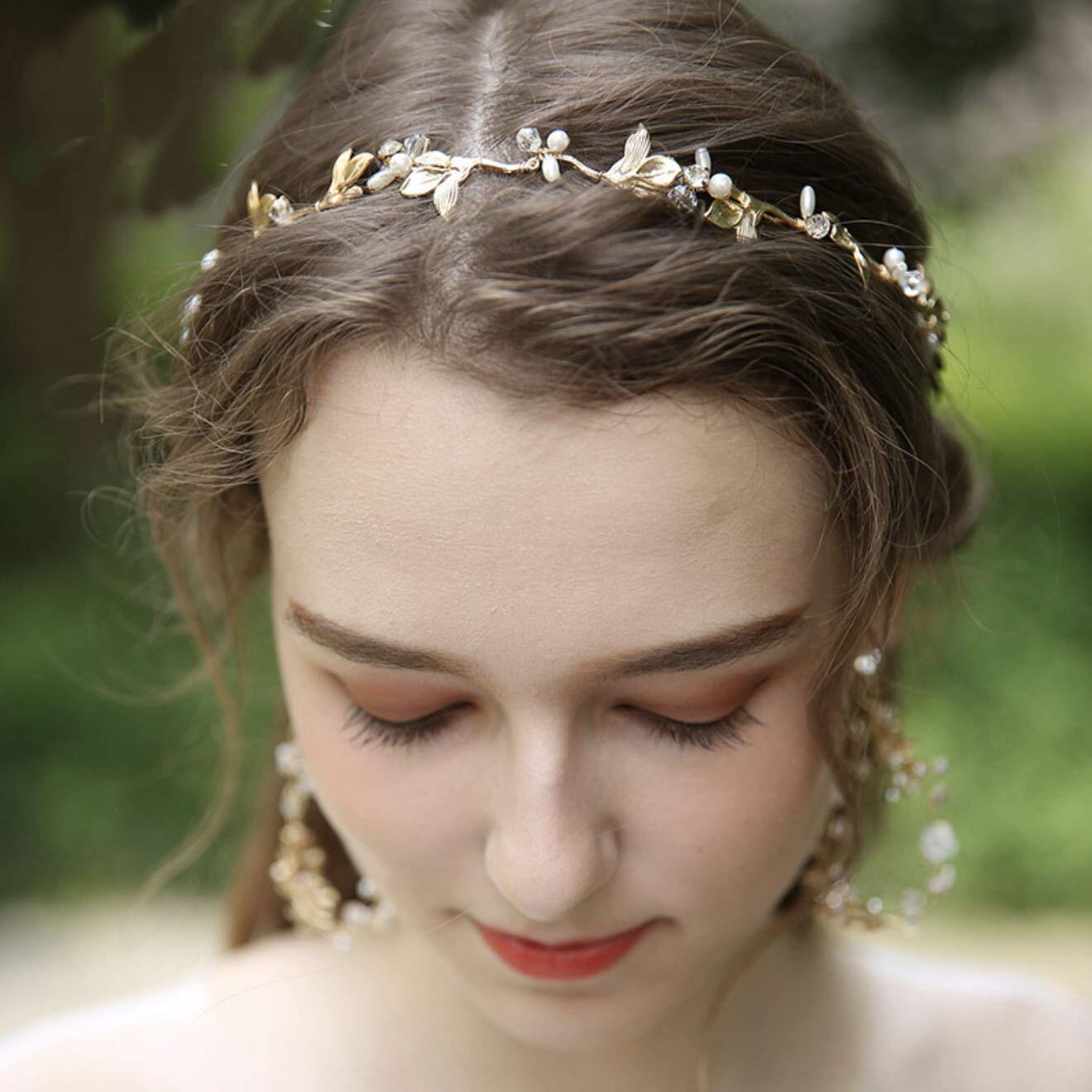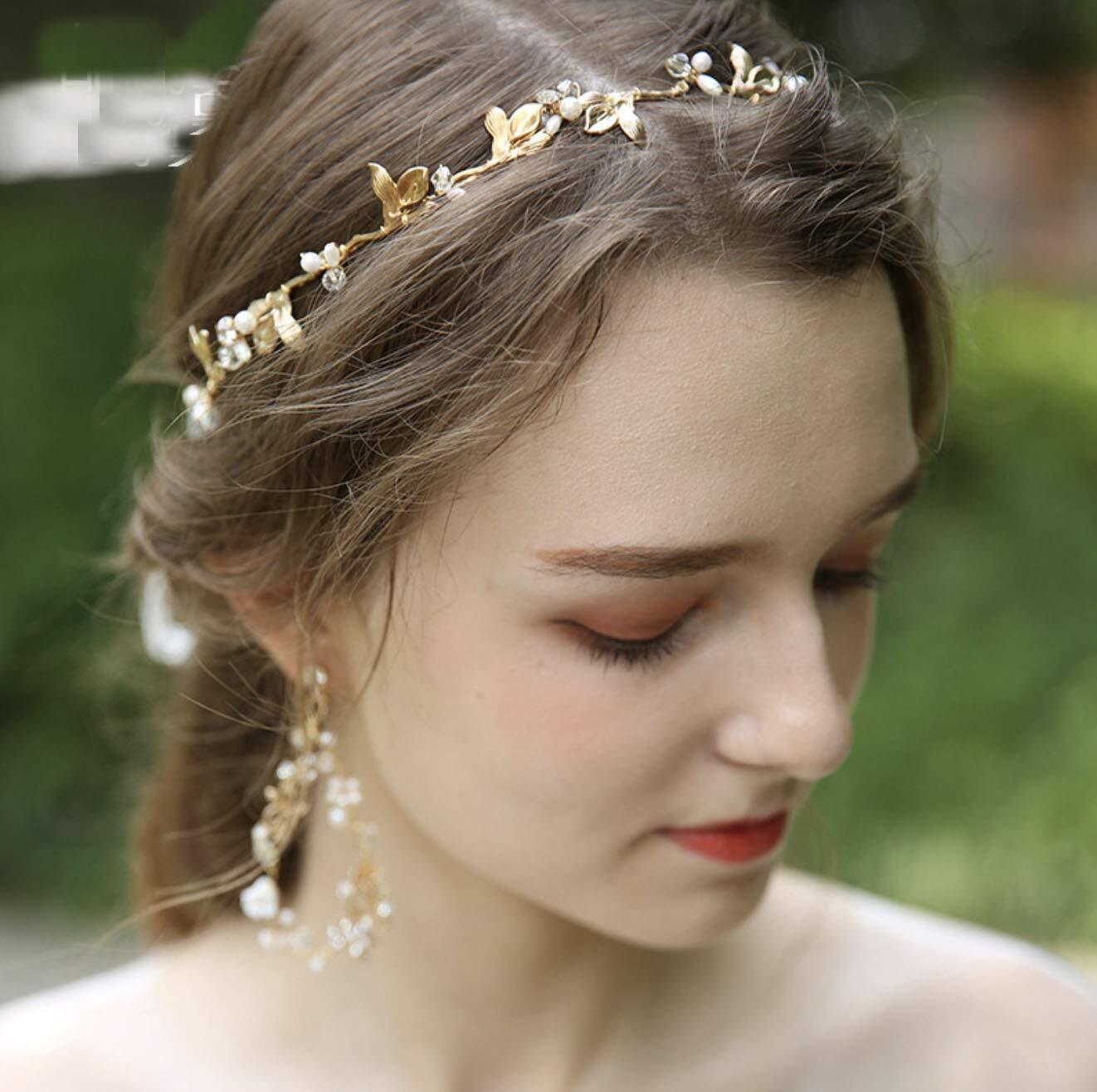【J's select】ゴールド リーフ ウェディング 結婚式 ブライダル 花嫁 ヘッドドレス カチューシャ 髪飾り ピアス イヤリング セット