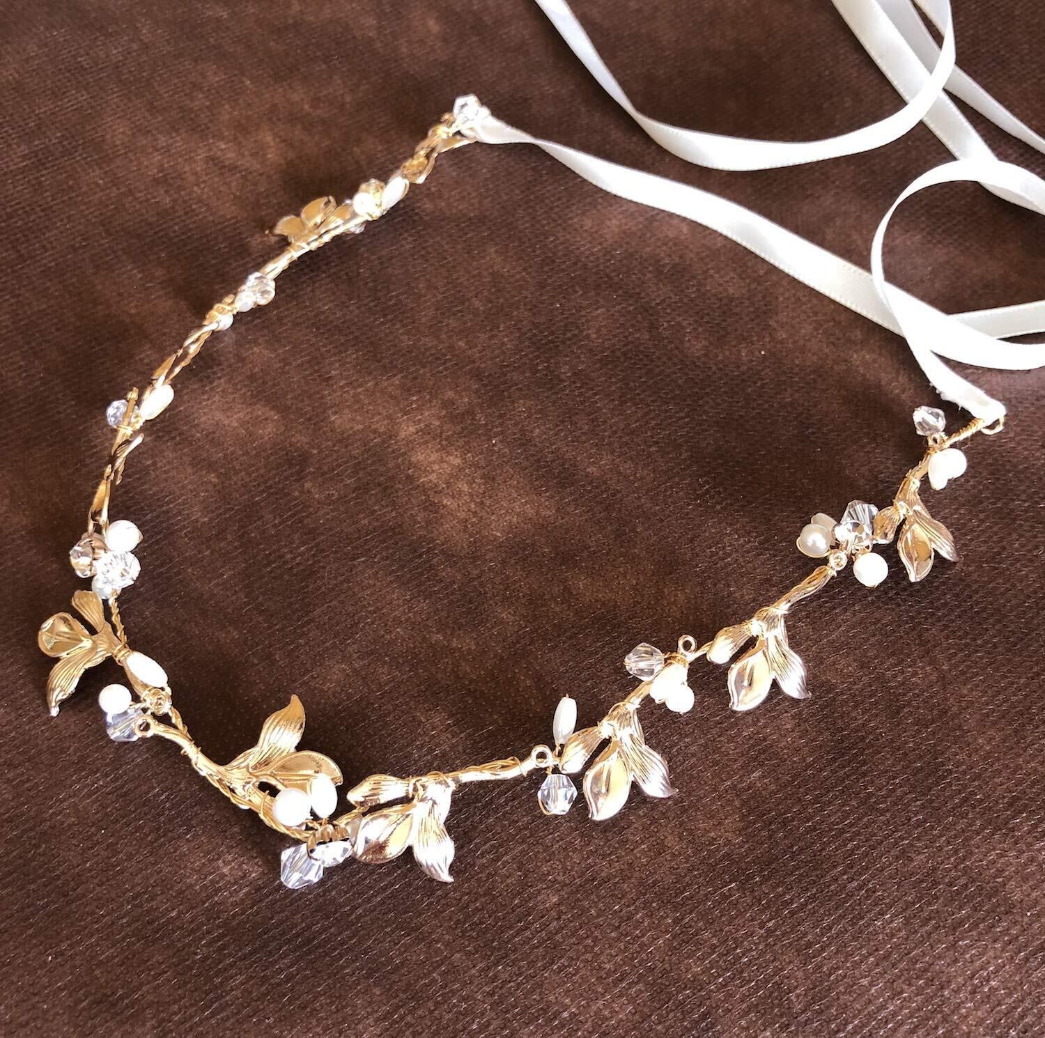花嫁さんに大人気のリーフ(葉)がモチーフのヘッドパーツとピアス(イヤリング)のセットです。