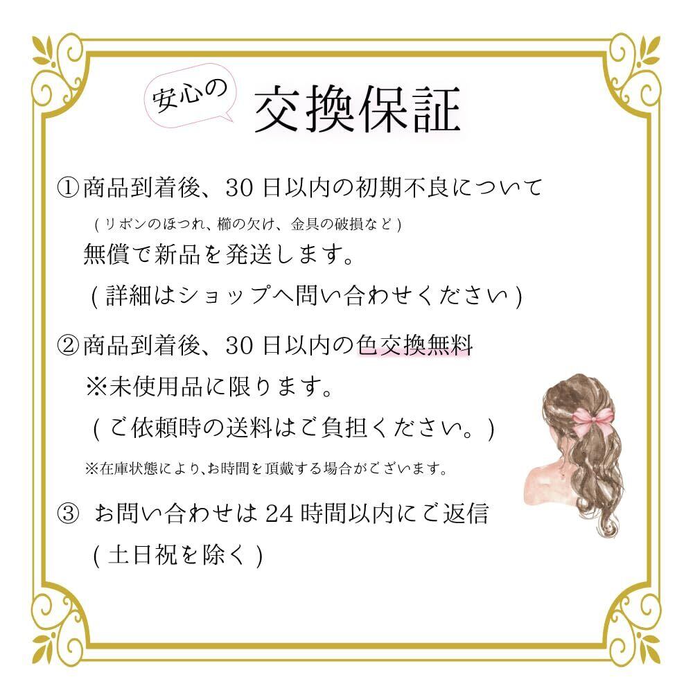 【シーンを選ばないお色味】落ち着いた色のアイボリーは年間を通じてご利用いただけるカラーのため、マストのヘアクリップですさらに持ち手の台座までしっかりリボンで隠しているため、髪にセットしても可愛さをキープします。