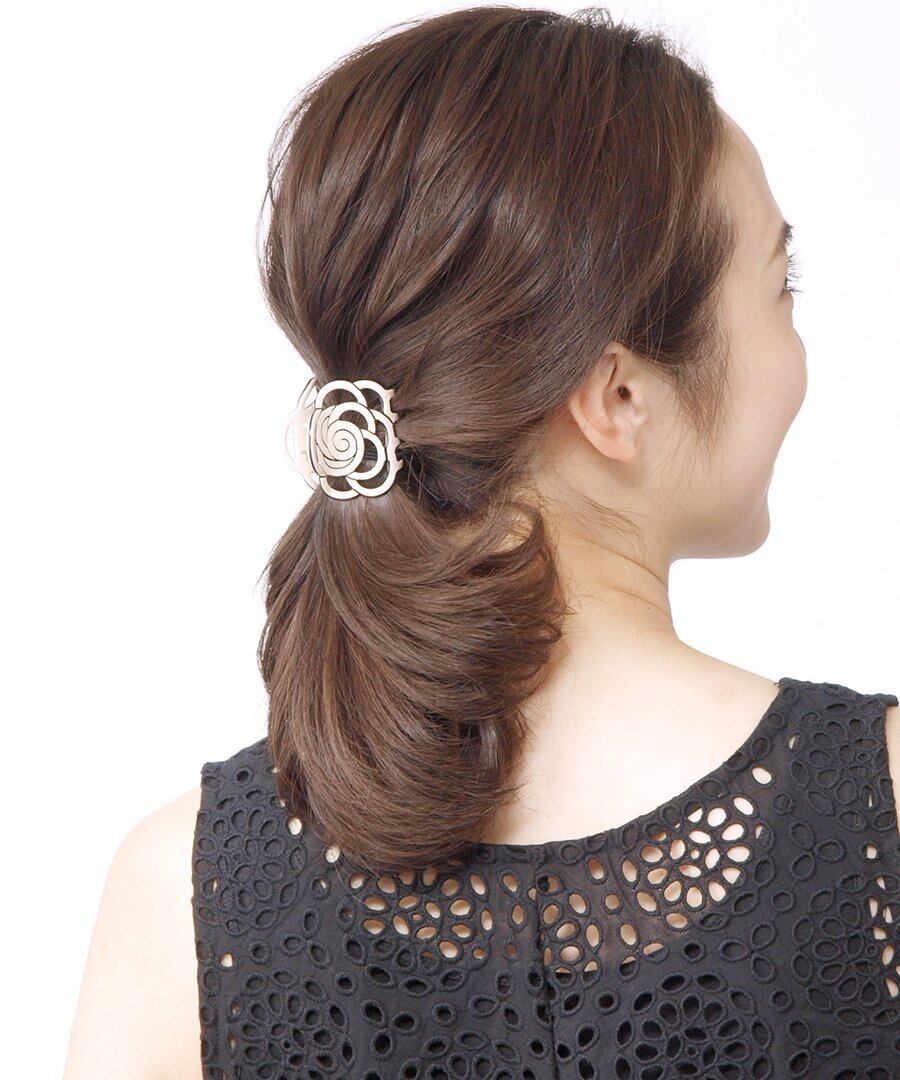 [ヴァンテーヌ] VINGTAINE ローズ バンスクリップ 透かし模様 シンプル オフィス ヘアクリップ ヘアアクセサリー H7133