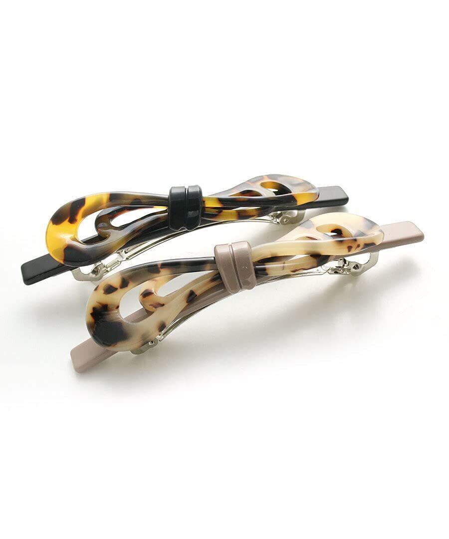 べっ甲風の柄とクラシカルな艶めきが上品なバレッタ。甘くなりがちなリボンモチーフもべっ甲柄なら大人っぽくまとまります。シーズンレスで使えるのも嬉しいポイント。シンプルなデザインなので、コーディネートに取り入れやすく、前髪を留めたり、ハーフアップのワンポイントなど、デイリー使いに活躍してくれそう。