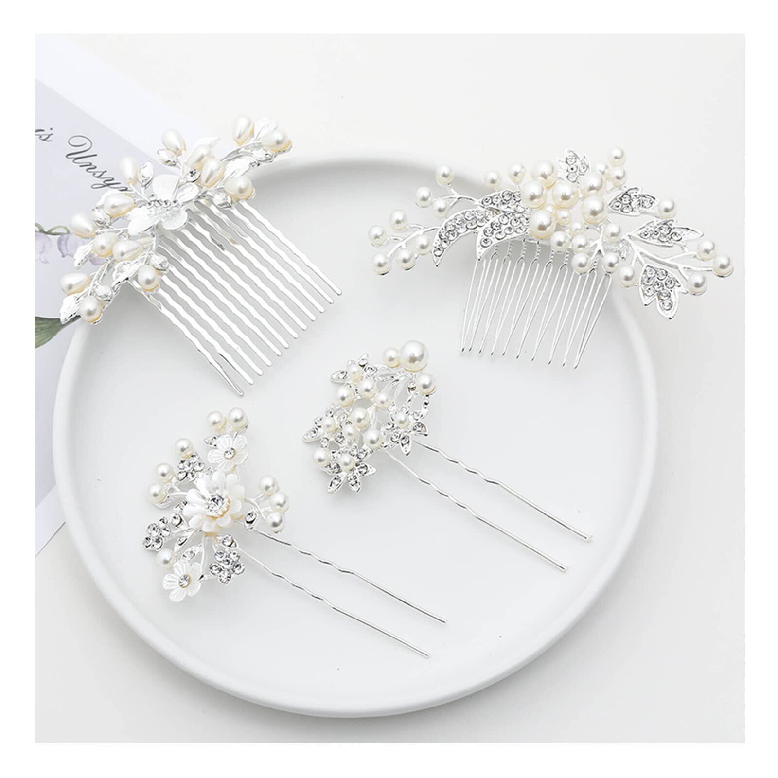ヘアピン パール 髪飾り 髪飾り パール パール パールピン パール パーティ ヘッドドレス ヘアピン コーム お花 手作り 髪飾り ヘアアクセサリー 結婚式 卒業式 入学式 髪飾り ヘッドドレス 和装 アレンジ 3点セット(シルバー)
