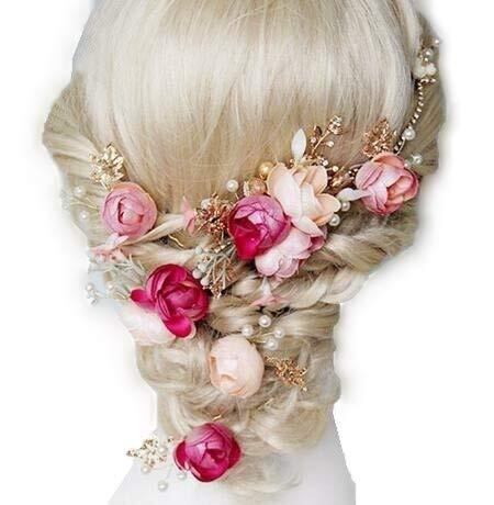 ワイヤー仕様でアレンジも自在。ローズやパールを散らしたりまとめたり。話題のラプンツェル風編み下ろしやハーフアップ、フィッシュボーン編み込みヘアスタイルなど、シーンに合わせたバリエーションが楽しめます。