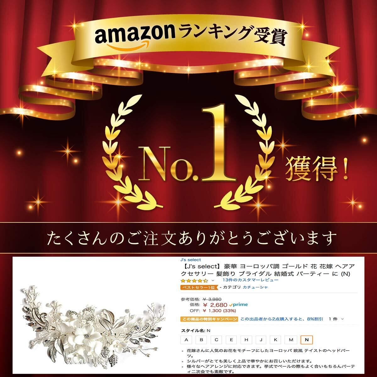 【J's select】豪華 ヨーロッパ調 ゴールド 花 花嫁 ヘアアクセサリー 髪飾り ブライダル 結婚式 パーティー に (N)
