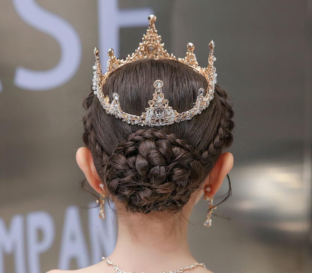 【サイズ】ティアラ:幅15cm・高さ6㎝ イヤリング・ピアス:長さ5㎝ ネックレス:長さ45~50㎝(調節可能)