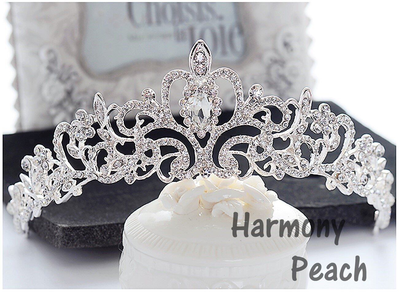 [Harmony Peach] プリンセスティアラ 結婚式 ウェディング アクセサリー 王冠 パール ラインストーン 花嫁 パーティー ブライダル(シルバー)