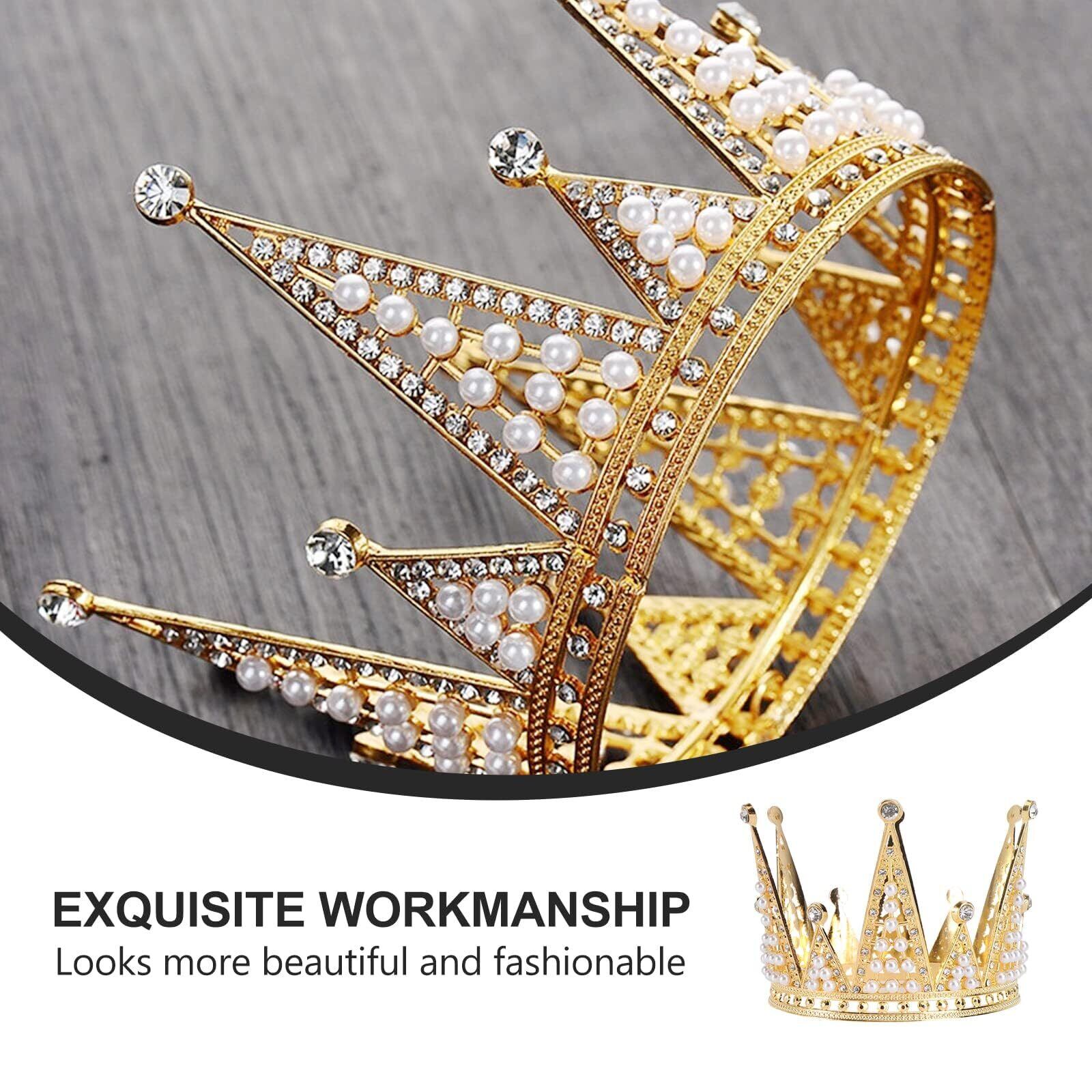 この豪華な花嫁のティアラは、上品な輝きを放つ真珠とラインストーンが施されたゴールドの王冠です。結婚式やパーティーなどの特別な日に、あなたを最高に美しく輝かせてくれるでしょう。ティアラの先端は細工の施された三角形の形状になっており、真珠とラインストーンが華やかに装飾されています。ティアラの縁にはラインストーンが一周施され、さらに上品な雰囲気を醸し出しています。ウェディングドレスやパーティードレスに合わせて、あなたをまばゆい女神のように輝かせてくれるアクセサリーです。特別な思い出に残る一品をぜひお手元に。