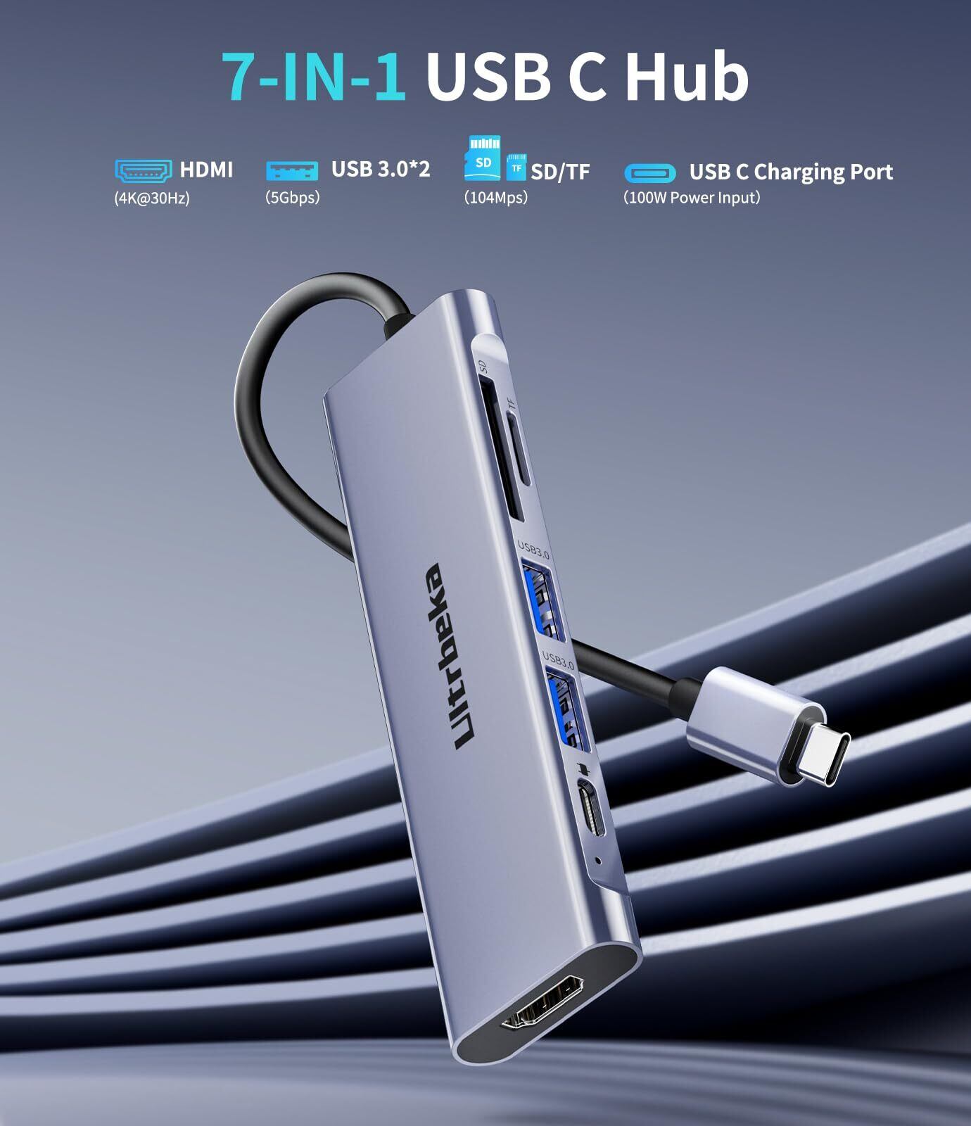 【7in1 USB Cハブ】USB C - HDMIマルチポートアダプタは、1*4K HDMIポート、2*USB 3.0ポート、1*USB-C 100W PD、マイクロTF / SDカードリーダースロットを備えており、ほとんどのUSB-Cラップトップ、MacBook Pro / Air、MacBook M1、M2、iMacに対応します。 MacBook Pro/Air、MacBook M1、M2、iMac、iPad Pro、iPhone 15 Pro/Pro Max、Dell、XPS、Surface、HPおよびその他のUSB-Cポートデバイス。