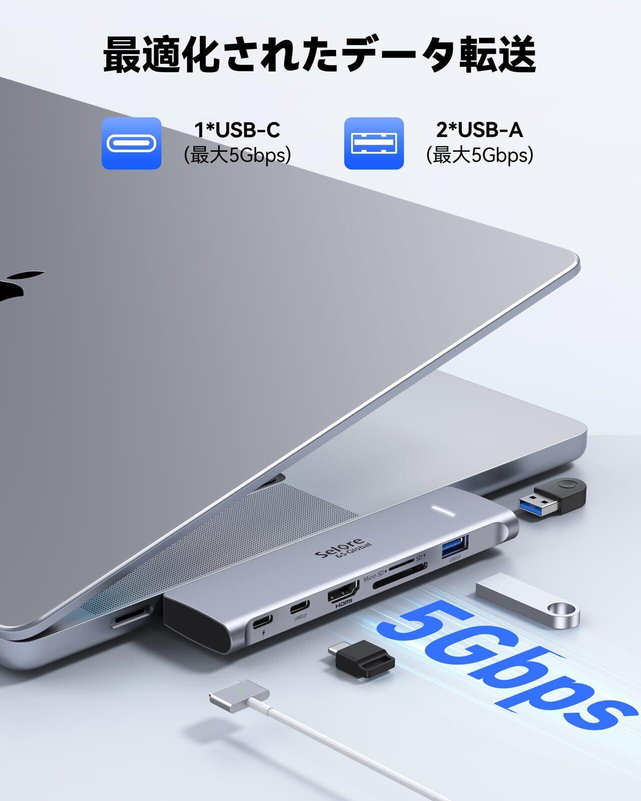 【便利なmicroSD & SDカード スロット】このmac ハブはSDカードスロットやmicroSDカードスロットが搭載されています。SD3.0規格なので、読込速度は104MB/Sで、書き込み速度は30MB/Sとなります。外で撮影した綺麗な動画や写真をすぐに転送してしまいます。カメラで撮影した画像や動画を取り込んで、SNSなどにアップしたい場合にも使えます