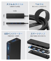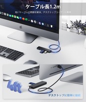 【120cmケーブル+マジックテープ】120cm長いケーブルによるほとんどの場所で制限なくハブを快適に使用できます。コンピュータのメインフレームがデスクトップの下にある場合でも、ケーブルの長さはデスクトップまで伸びているため、かがんでストレージ・デバイスを抜き差しする必要はありません。マジックテープがあり、ケーブルの長さはお好みで調節でき、整理もしやすいです。