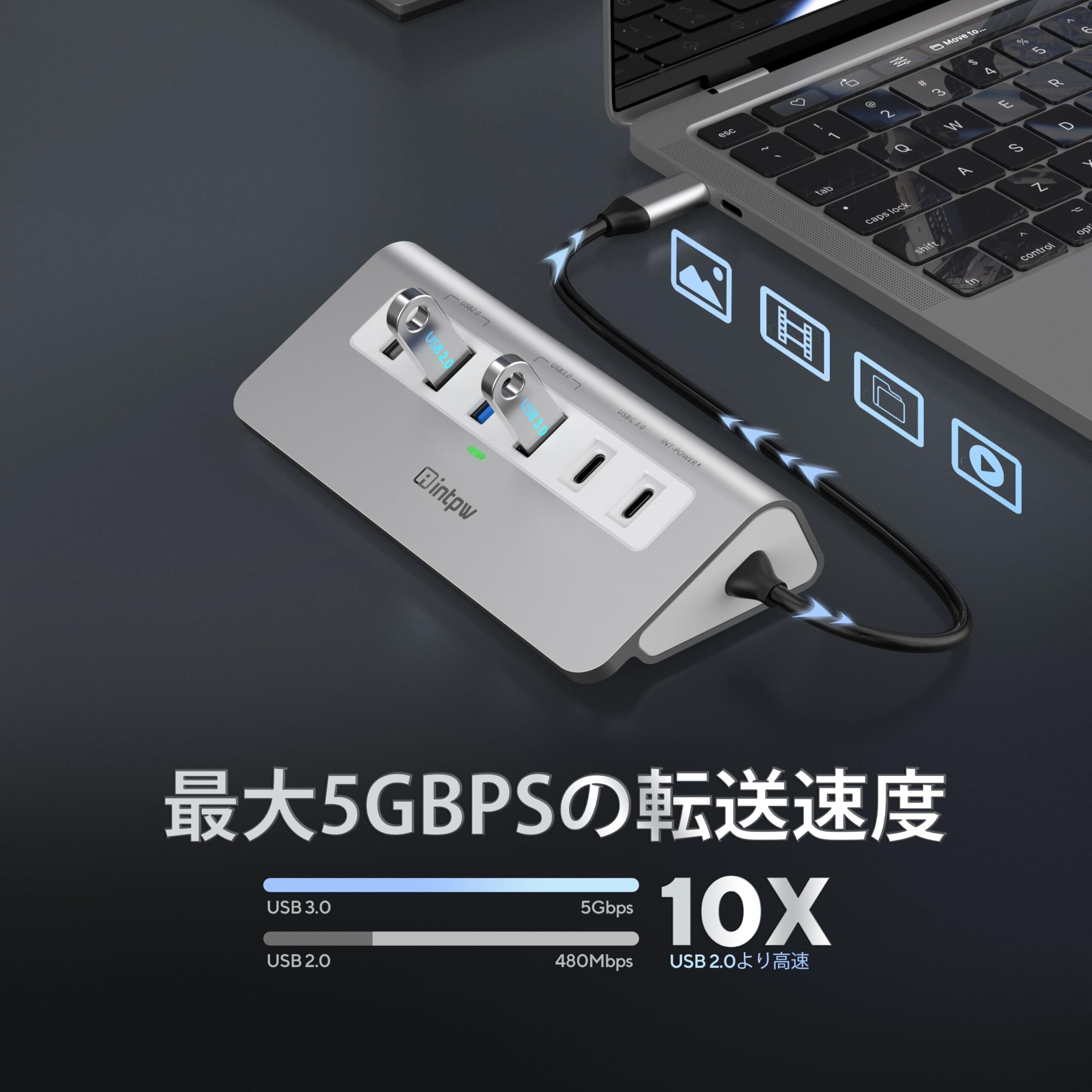 急速充電: 100W USB-C PD 充電ポートを使用して、Type-C ノートパソコンとタブレットを充電します。より良い体験のために、usb ハブ 電源付き を使用する場合は、少なくとも 65W の電源を使用して usb ハブ 3.0 経由でノートパソコンを充電してください。(PD ポートはデータ転送をサポートしていません)