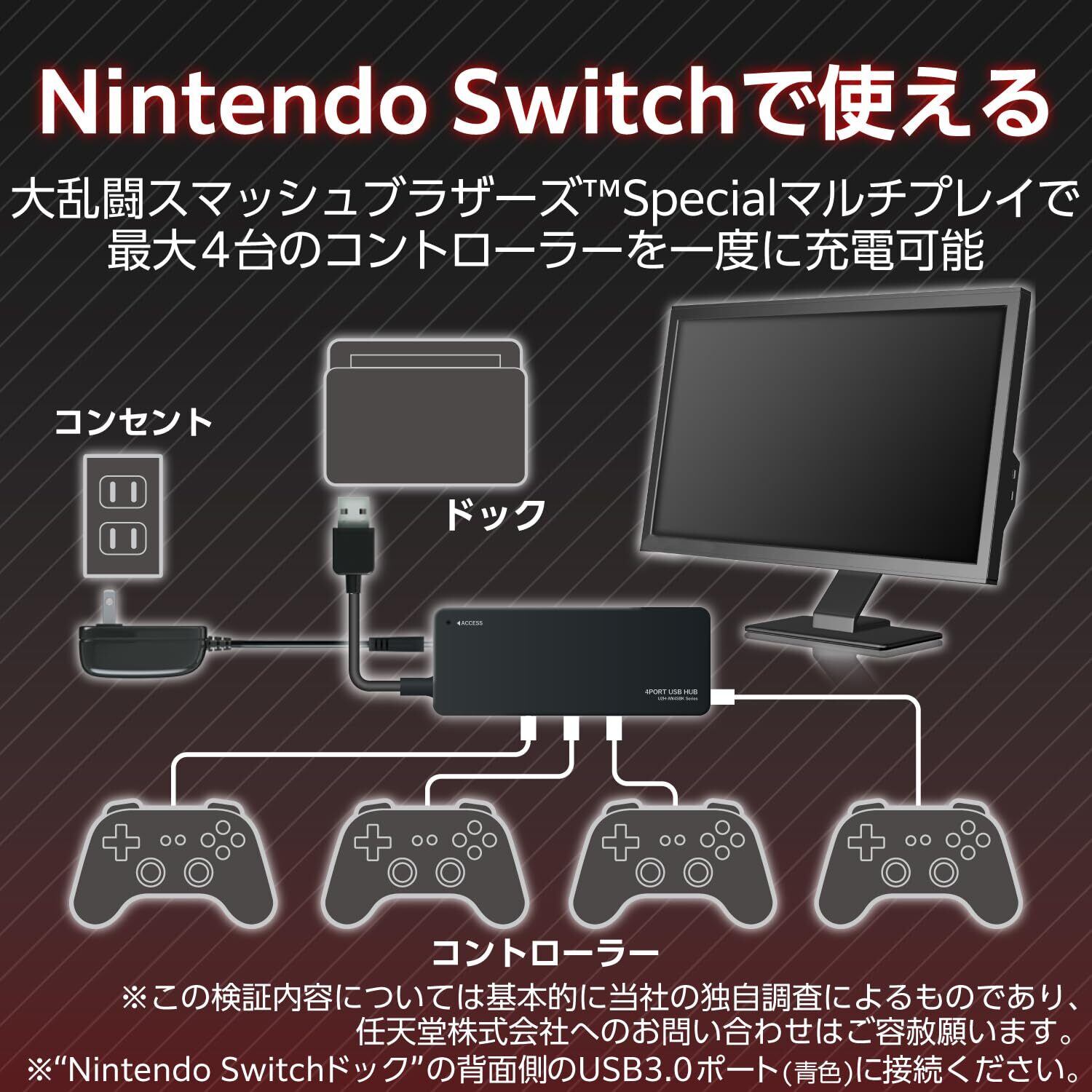 エレコム USB2.0 ハブ 4ポート ACアダプタ付 セルフ/バス両対応 Nintendo Switch動作確認済 ブラック U2H-AN4SBK