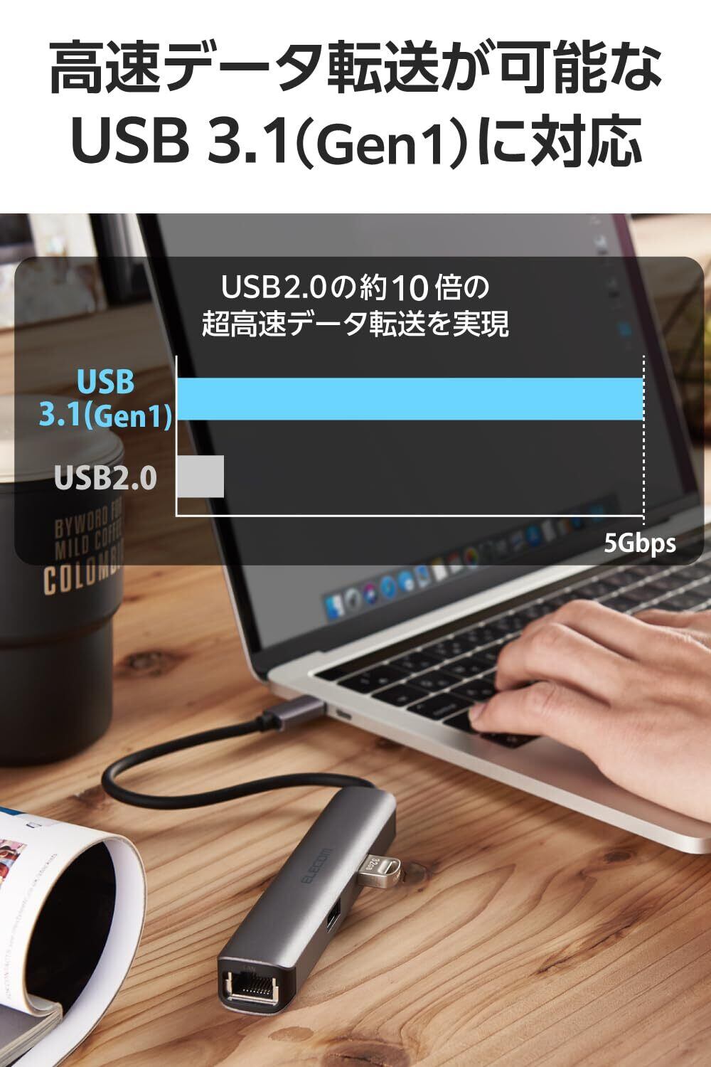エレコム USB Type-C ハブ ドッキングステーション 5-in-1(LANポート) DST-C17SV/EC HDMIポート 4K対応 USB3.0×3ポート Macbook/Macbook Pro/iPad Pro/Surface他対応